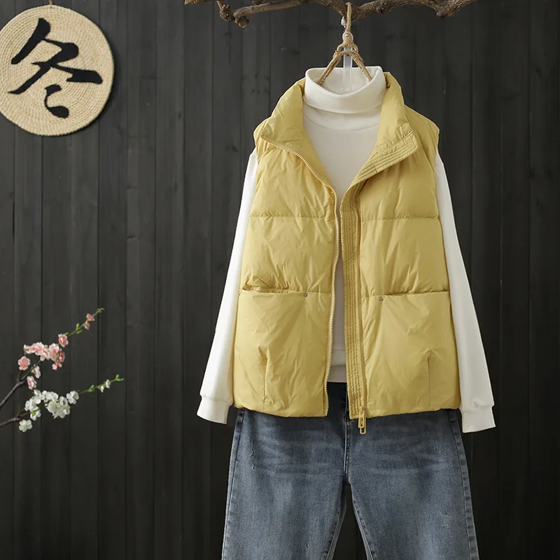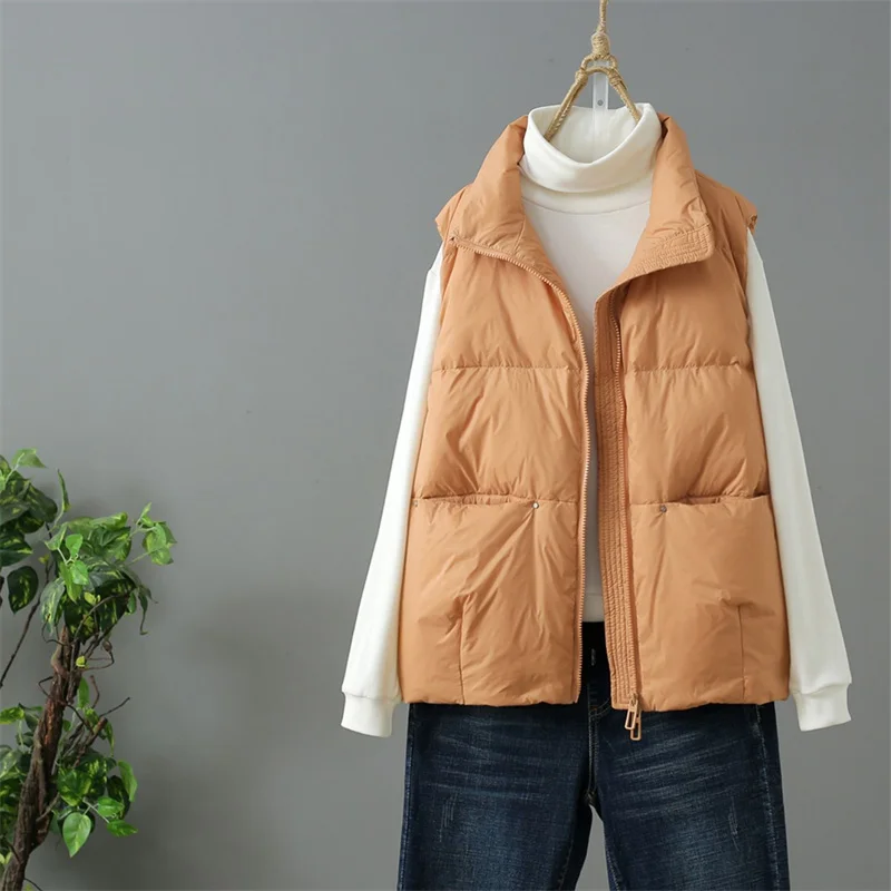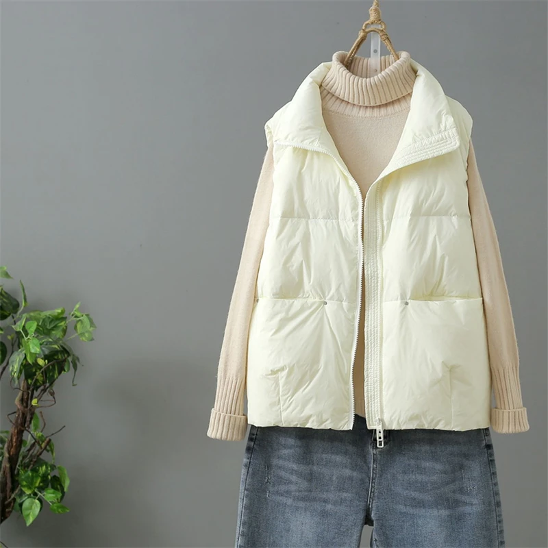 Autumn Winter Women Oversize Down Waistcoat Parkas Warm Light Thin White Duck Down Vest Coat Ladies Short Sleeveless Tank Jacket
