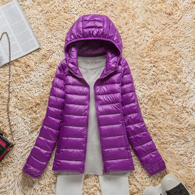 Women Ultra Light Down Jacket New Autumn Winter Hooded White Duck Down Lightweight Parkas Female Warm Thin Slim Short Coat AB432