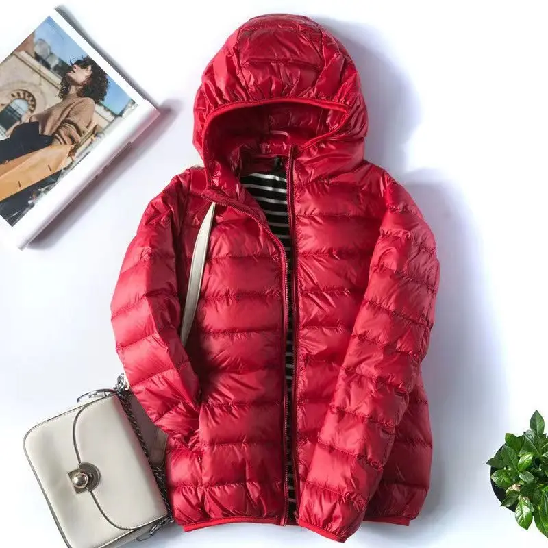 6XL 7XL Women White Duck Down Jackets Winter Female Hooded Ultra Light Portable Coats Windproof Long Sleeve Slim Warm Parkas