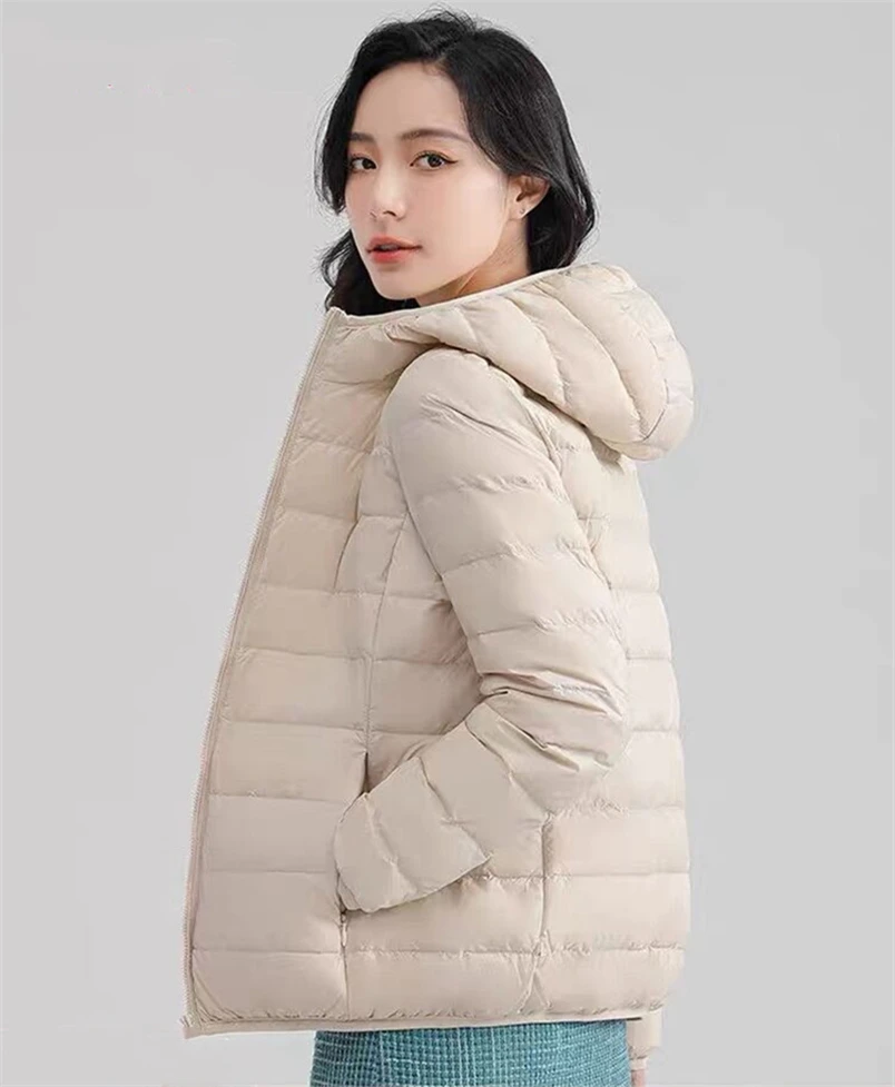 Autumn Winter Women Ultra-light Thin Down Jacket Duck Down Hooded Jackets Long Sleeve Packable Slim Warm Lady Coat