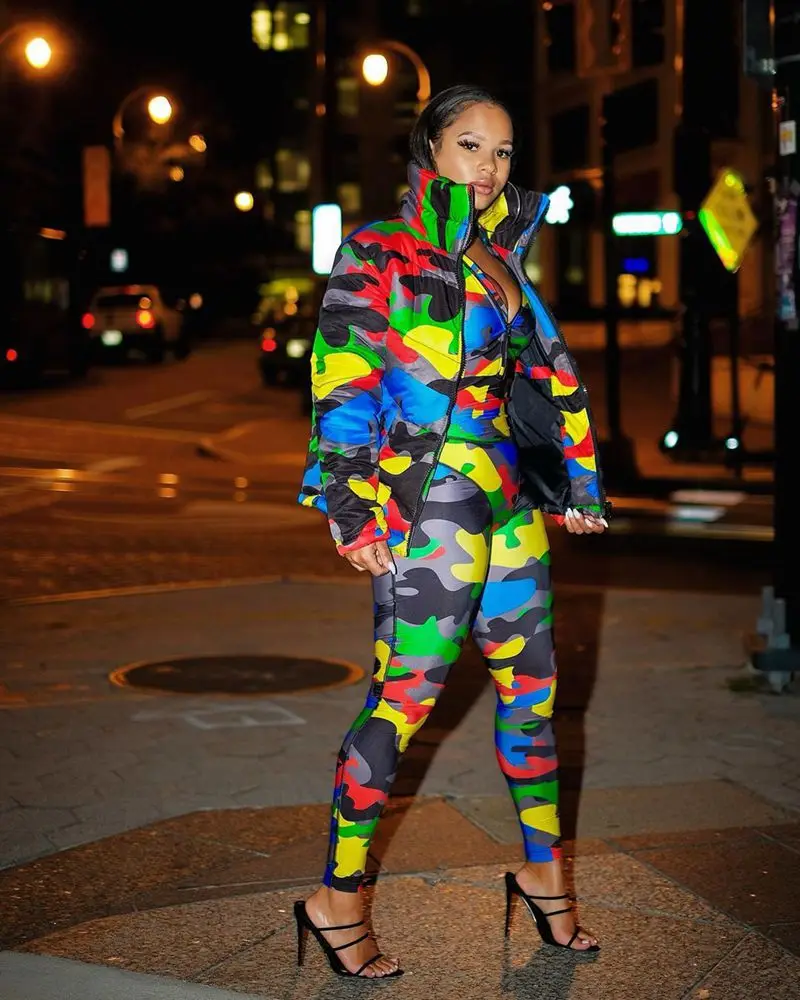 Camouflage Winter Coat for Men and Women, Warm Down Parka, Oversized Jacket, Outerwear, Fashion Clothing, New