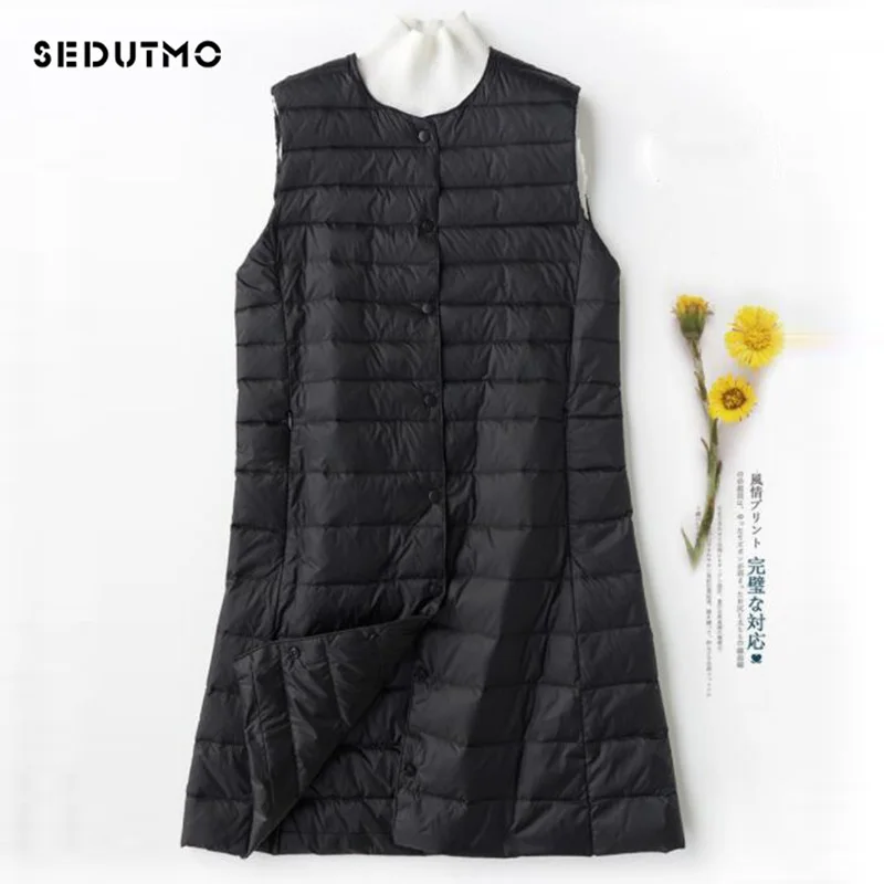 SEDUTMO Spring Womens Down Jackets Vest Long Ultra Light Waistcoat Winter Puffer Jacket Slim Parkas ED757