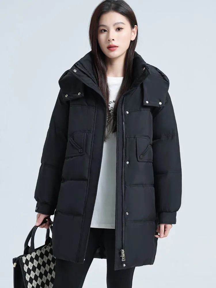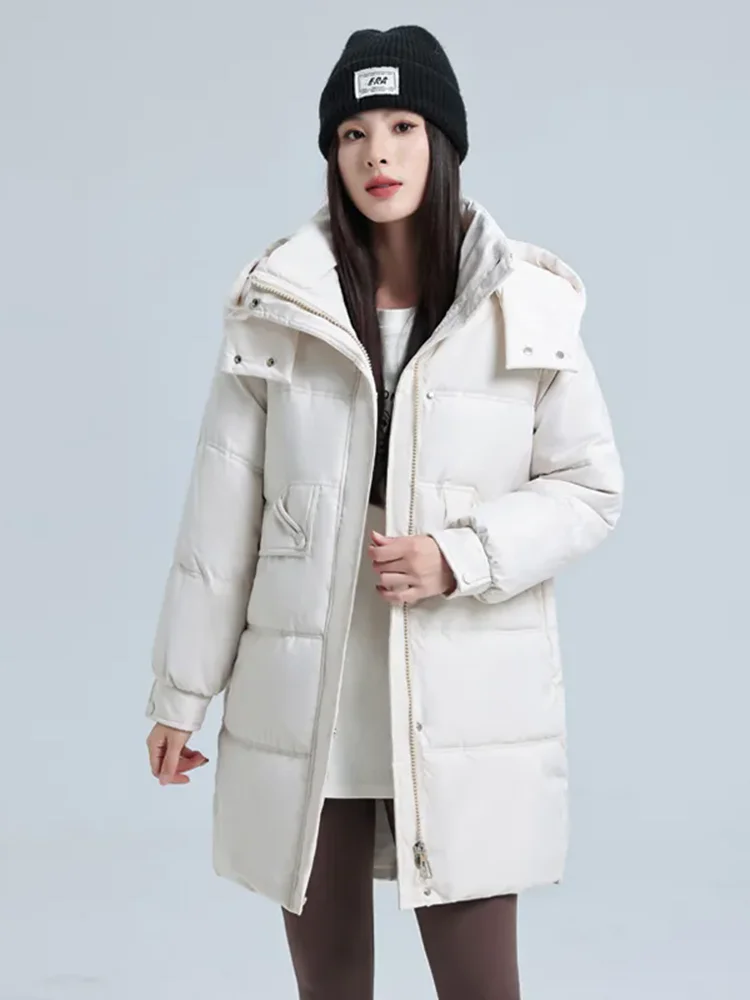 Winter Warm Loose Hooded Abrigos De Plumas Women Casual Zipper Single Breasted Jackets Tops Korean Fashion Long Sleeve Abrigos
