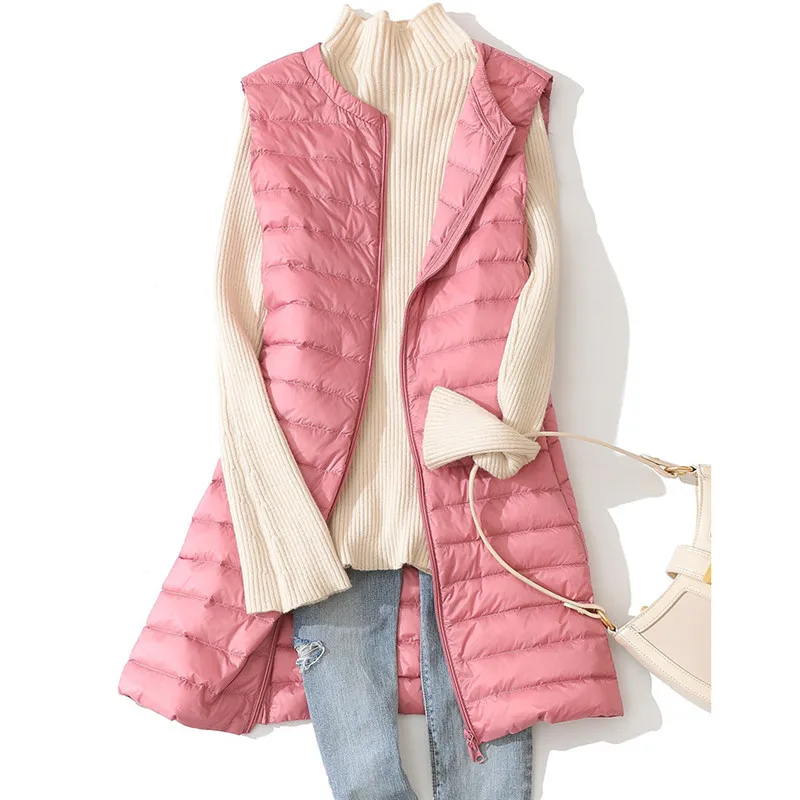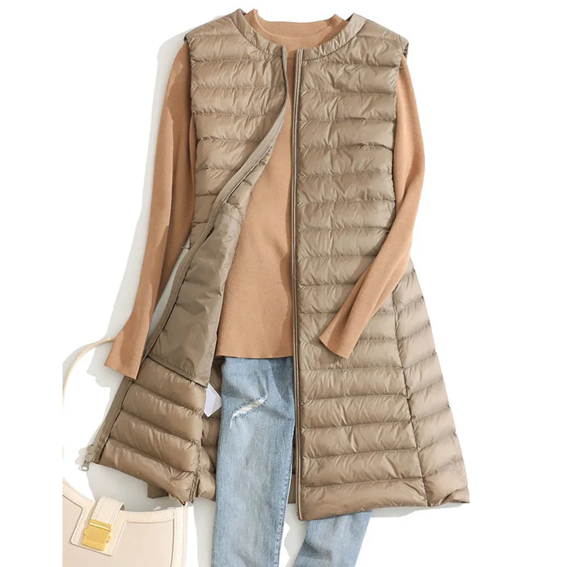 Women Down Waistcoat Coat 2022 Autumn Winter Light Thin White Duck Down Vest Jacket Lady O Neck Sleeveless Long Outwears Parkas