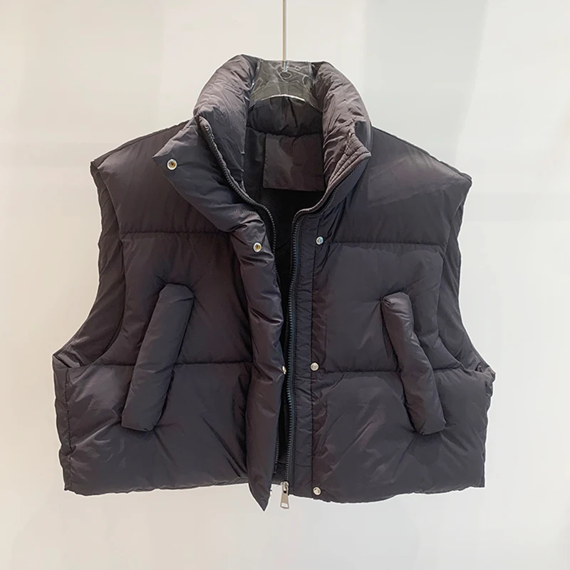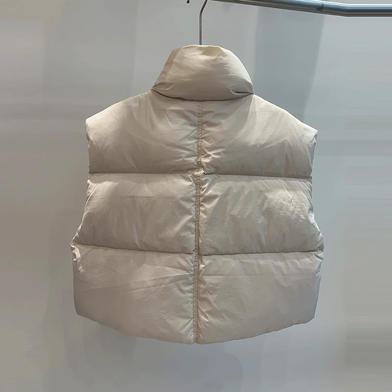 New Autumn Winter Stand Collar Short Puffer Sleeveless Vest Women Casual Loose Warm 90% White Duck Down Waistcoat