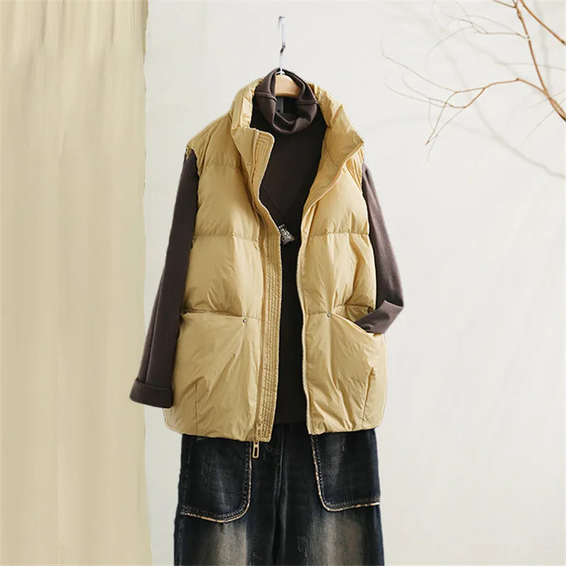 Women Down Waistcoat 2022 Autumn Winter Ultra Light White Duck Down Vest Coat Ladies Loose Tank Warm Puffer Jacket Short Tops
