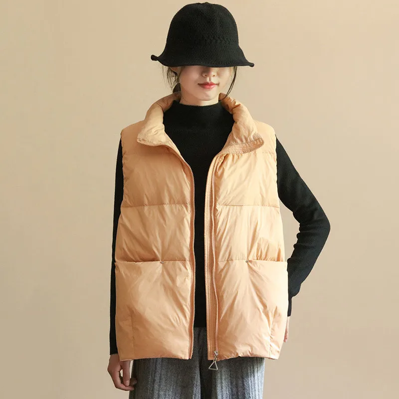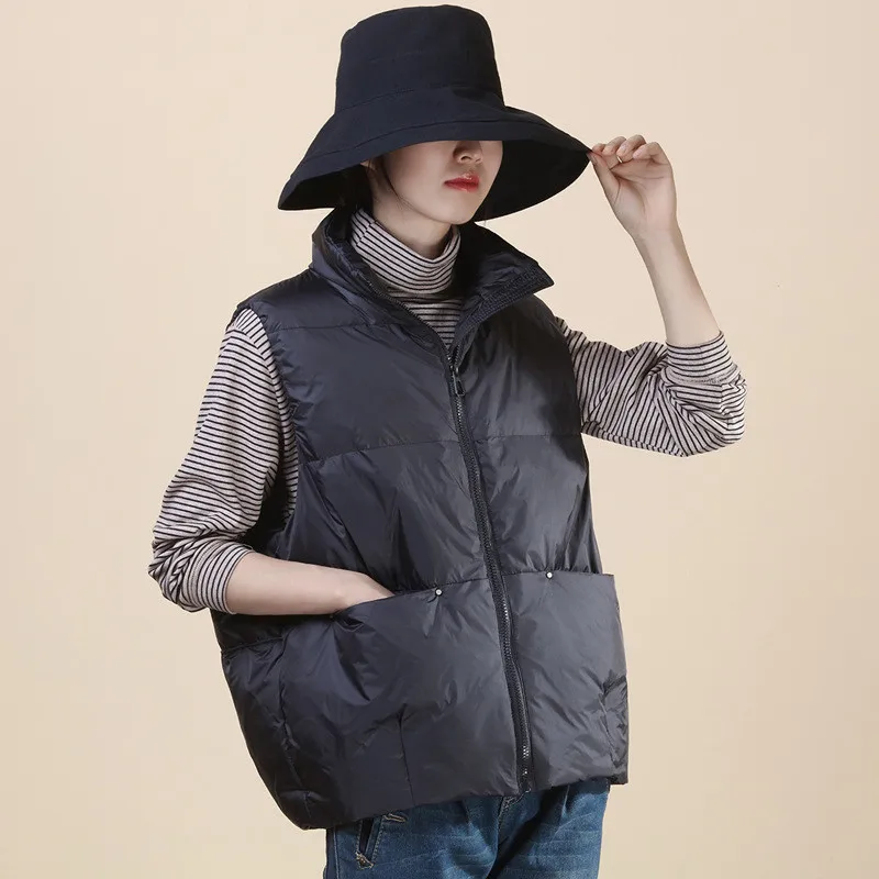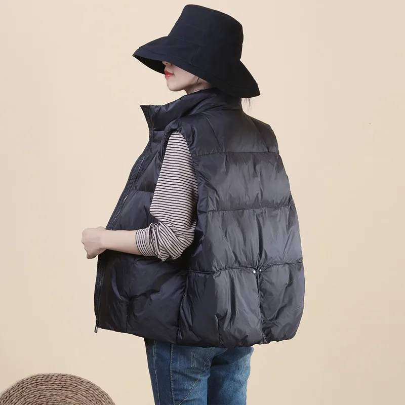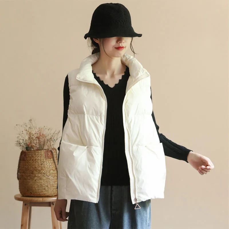 Autumn Winter Warm Loose Down Waistcoat Jacket Women Stand Collar Light White Duck Down Vest Ladies Sleeveless Short Tank Coat