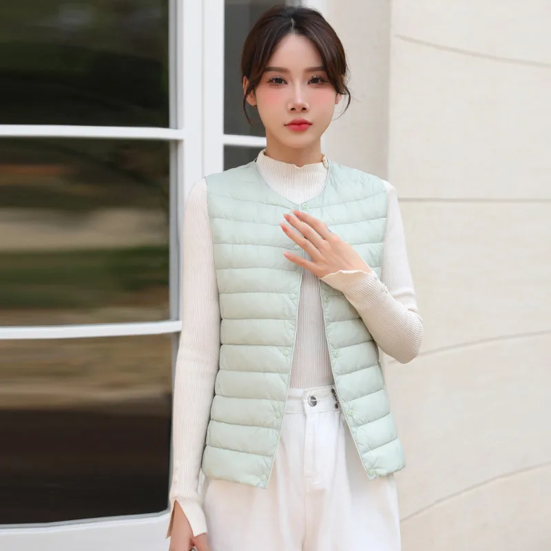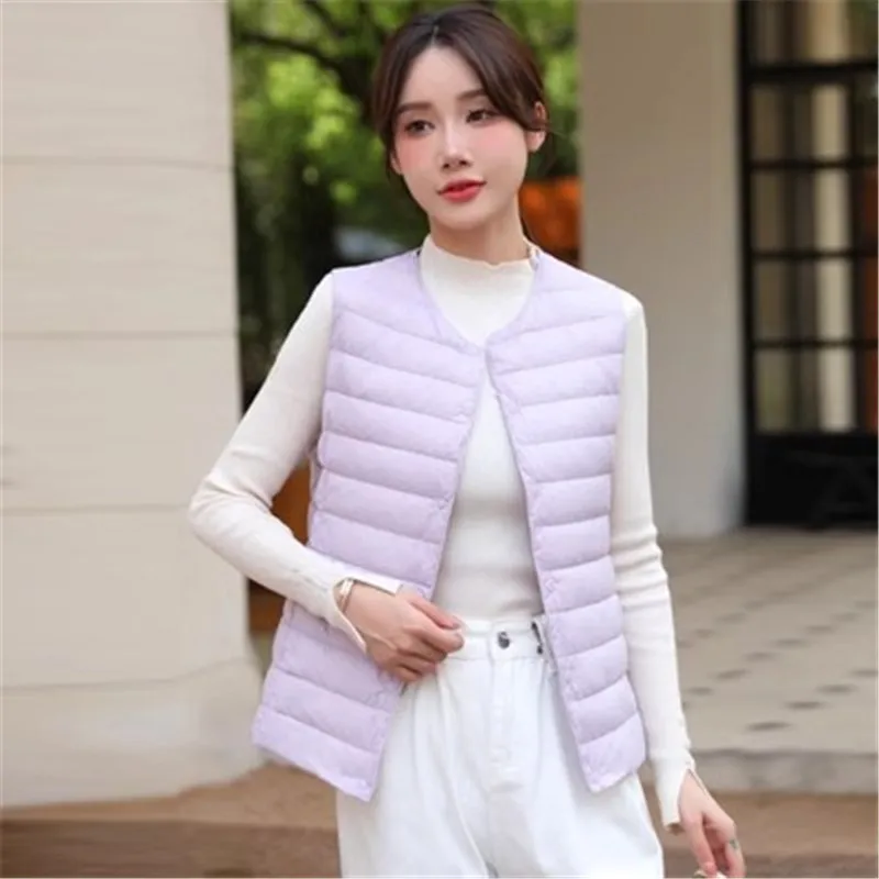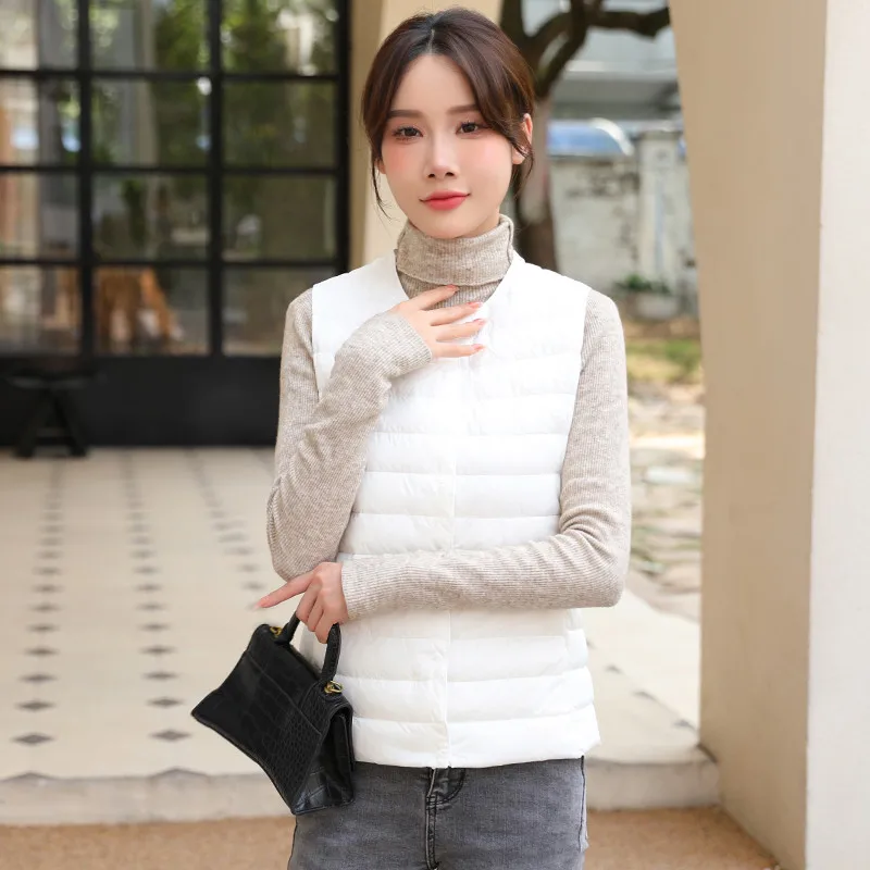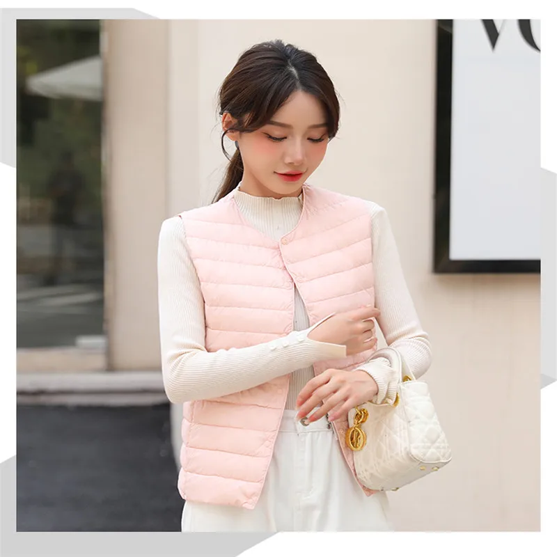 Autumn Winter Ultra Light White Duck Down Vest Coat Parkas Women O Neck Down Waistcoat Ladies Sleeveless Warm Tank Short Jacket