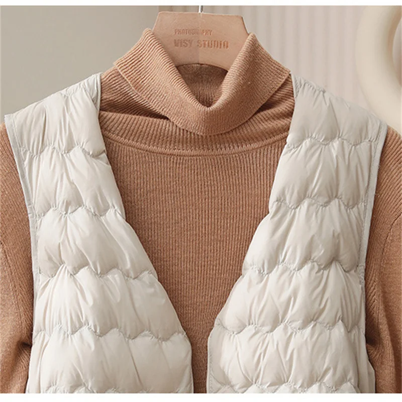 Autumn Winter Wavy Down Waistcoat Jacket Women Ultra Light White Duck Down Vest Parkas Female Sleeveless Short Warm Tank Coat