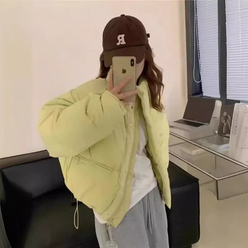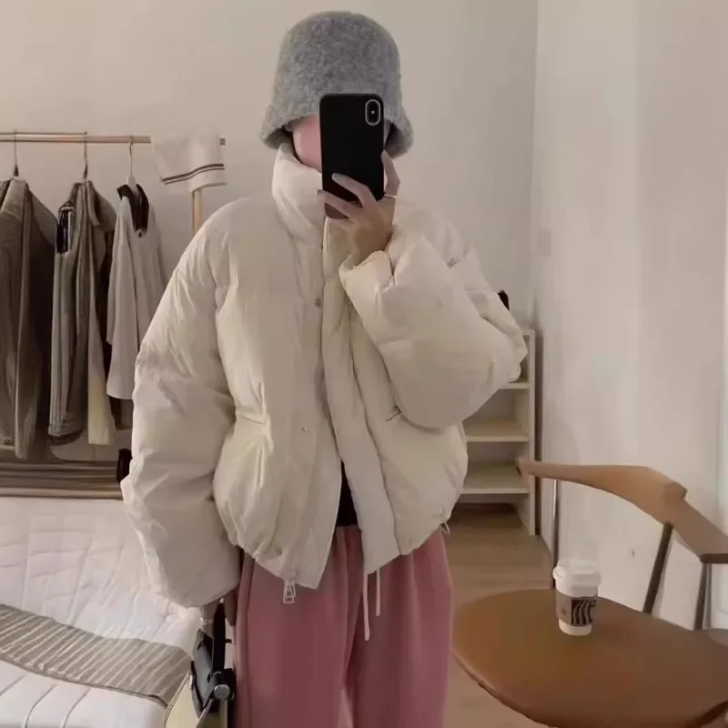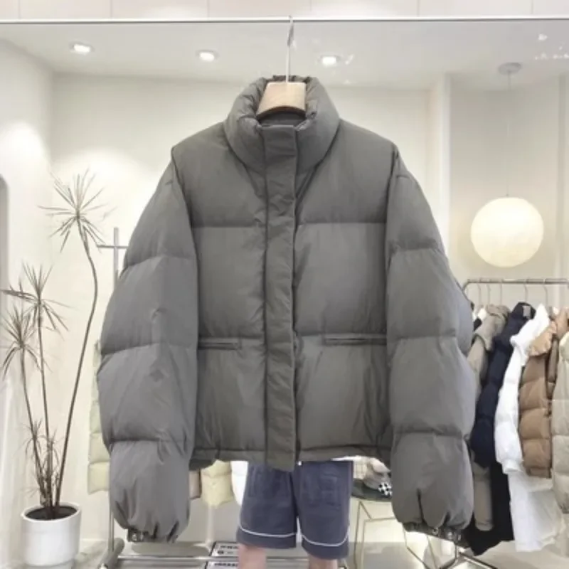 Short Down Jacket with Loose Stand Up Collar and Warm White Duck Down Jacket Women Fur Jacket