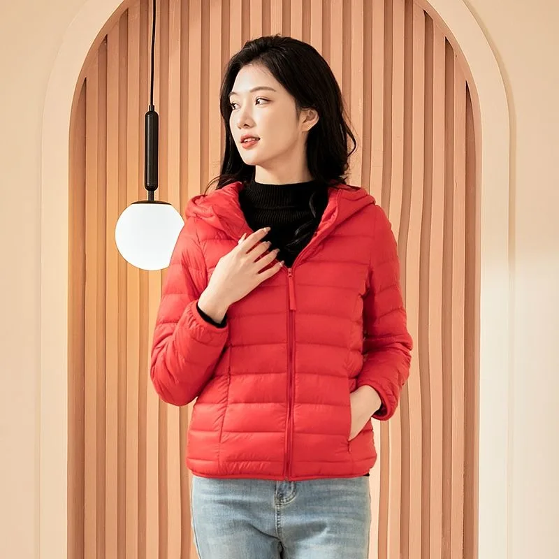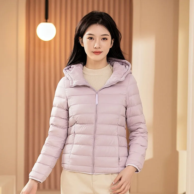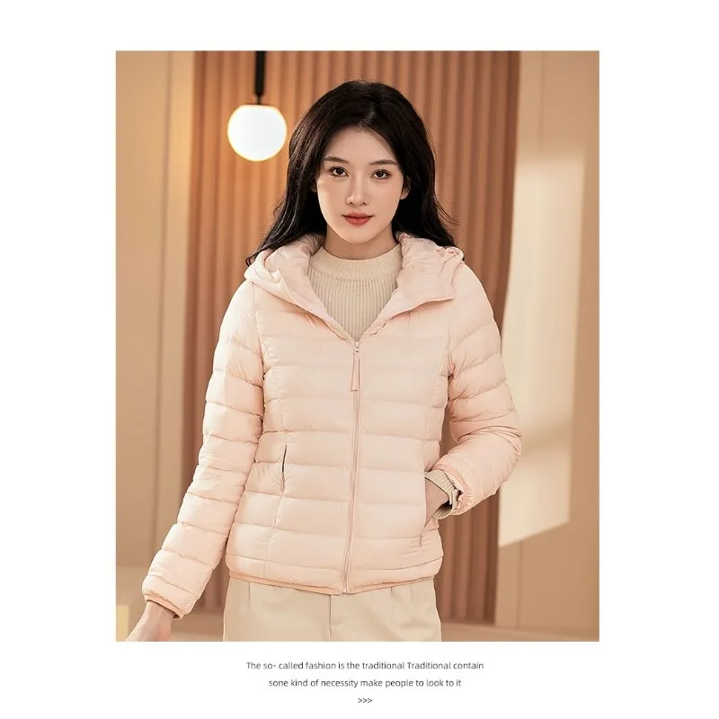 Versatile Slim Fit Women Warm Hooded Coat 2024 Autumn Winter New Models Fashion Lightweight Down Jacket Eight Color Options