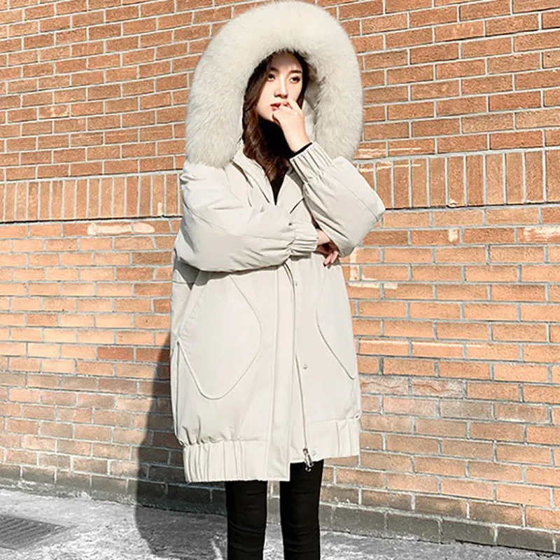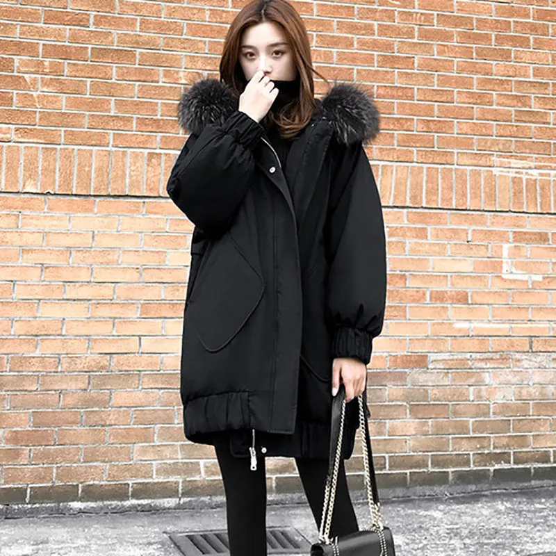 Winter Warm Jackets Black Down Jacket Women Long White Duck Down Outerwear Abrigo Mujer Hooded Fur collar Casual Parka Overcoat