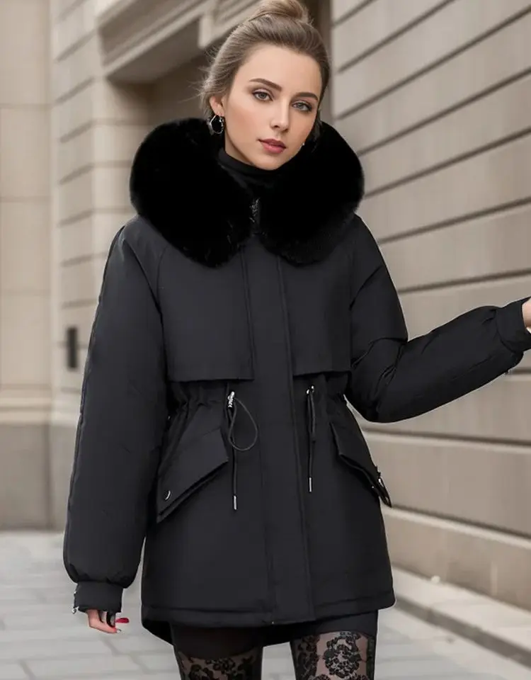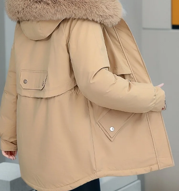 Short-style Ladies Winter Down Jacket With Fur Collar Short-rope Warm Cotton Jacket Loose Plus Down Rope Warm Down Jacket