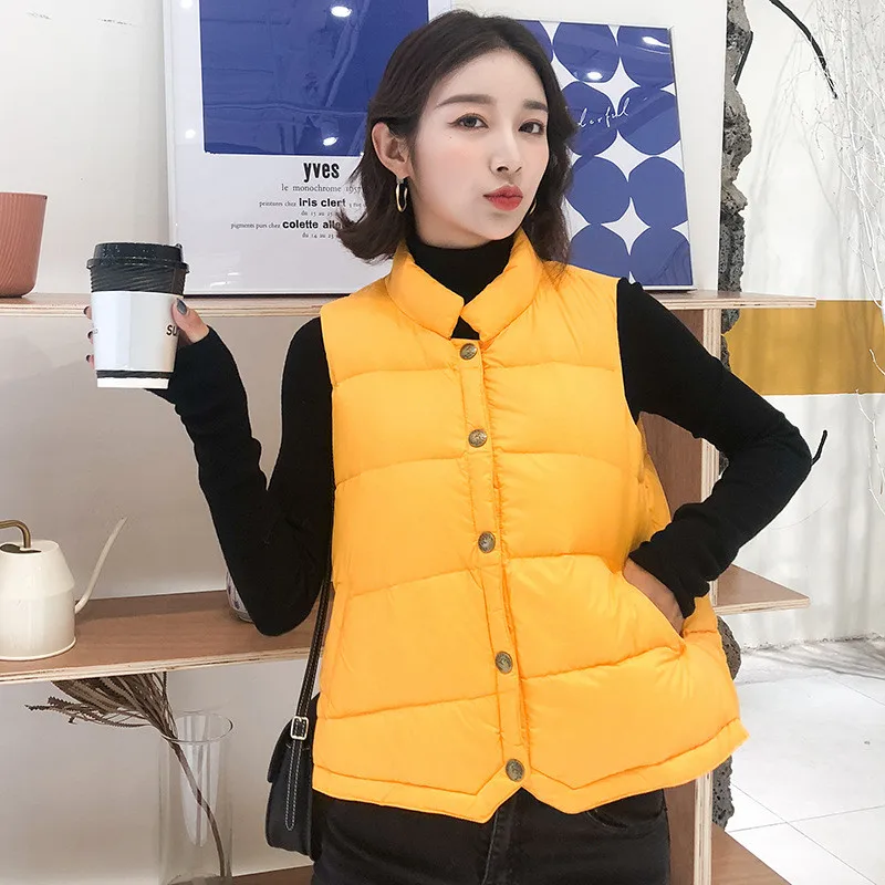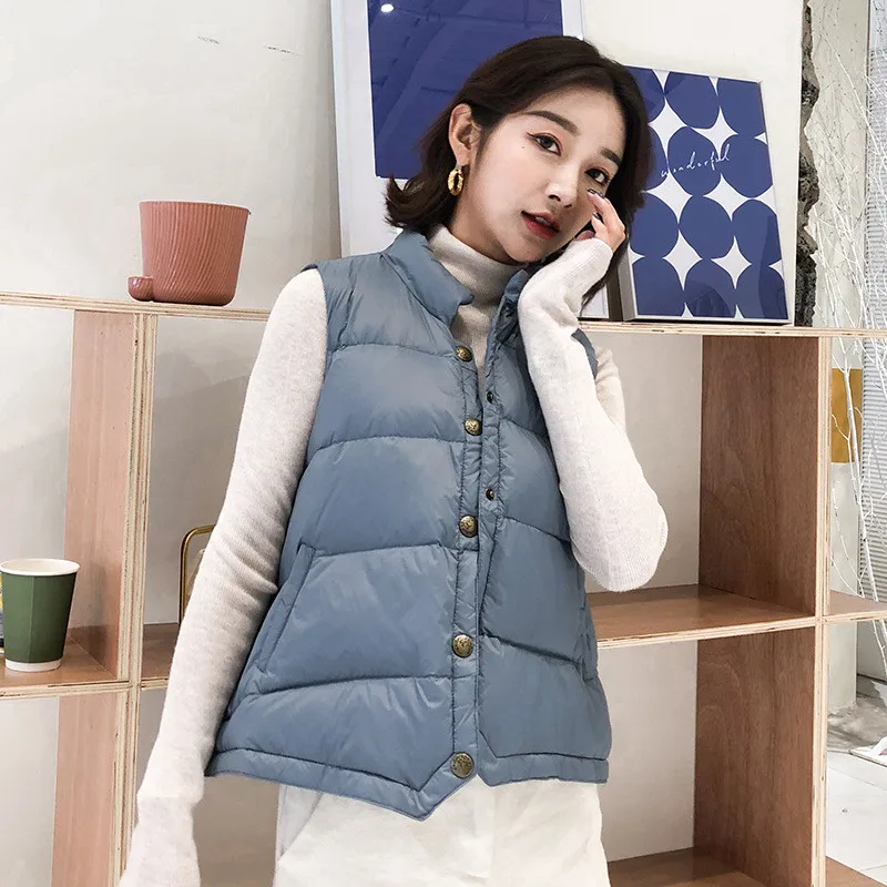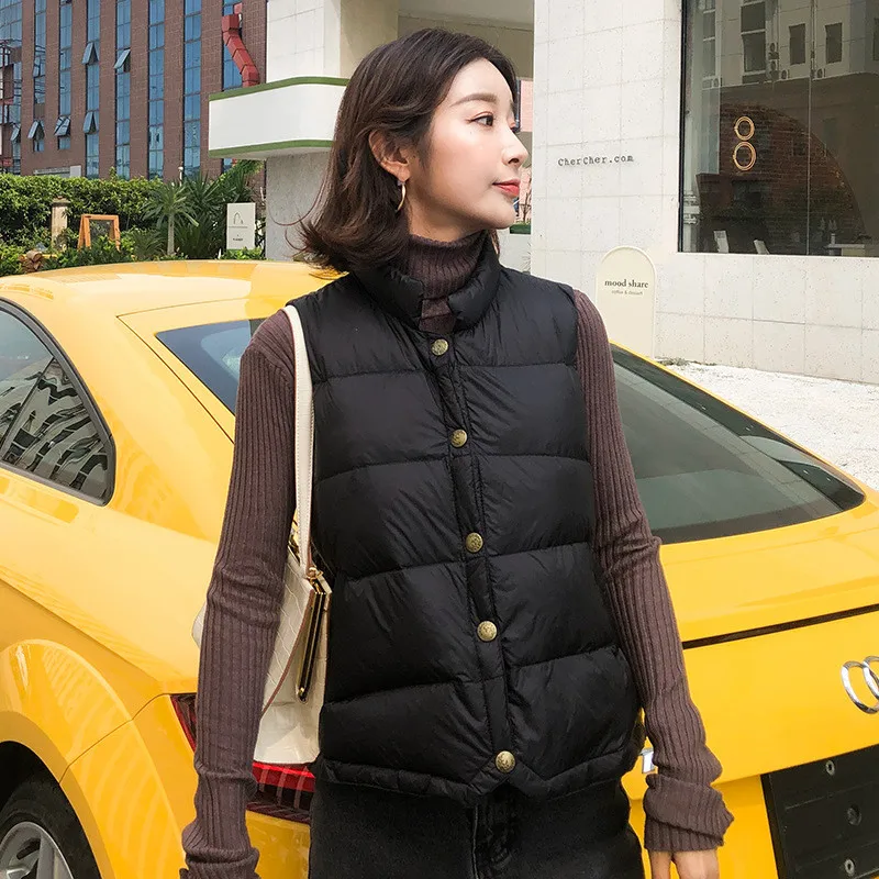 Women Down Vest Autumn Winter Warm Light Thin White Duck Down Vests Lady Stand Collar Sleeveless Waistcoat Parka Coat Short Tops