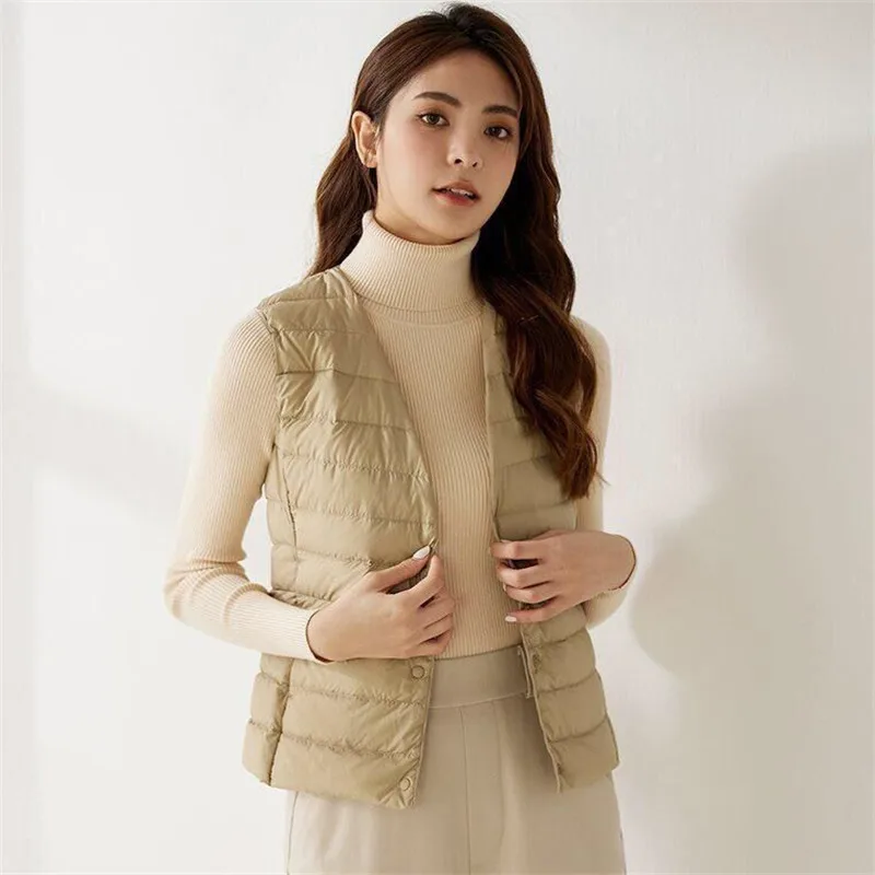 2023 Autumn Winter Ultra Light White Duck Down Vest Coat Parkas Women Warm Sleeveless Waistcoat Ladies Slim Short Tank Jacket