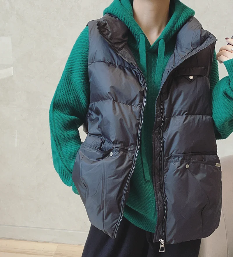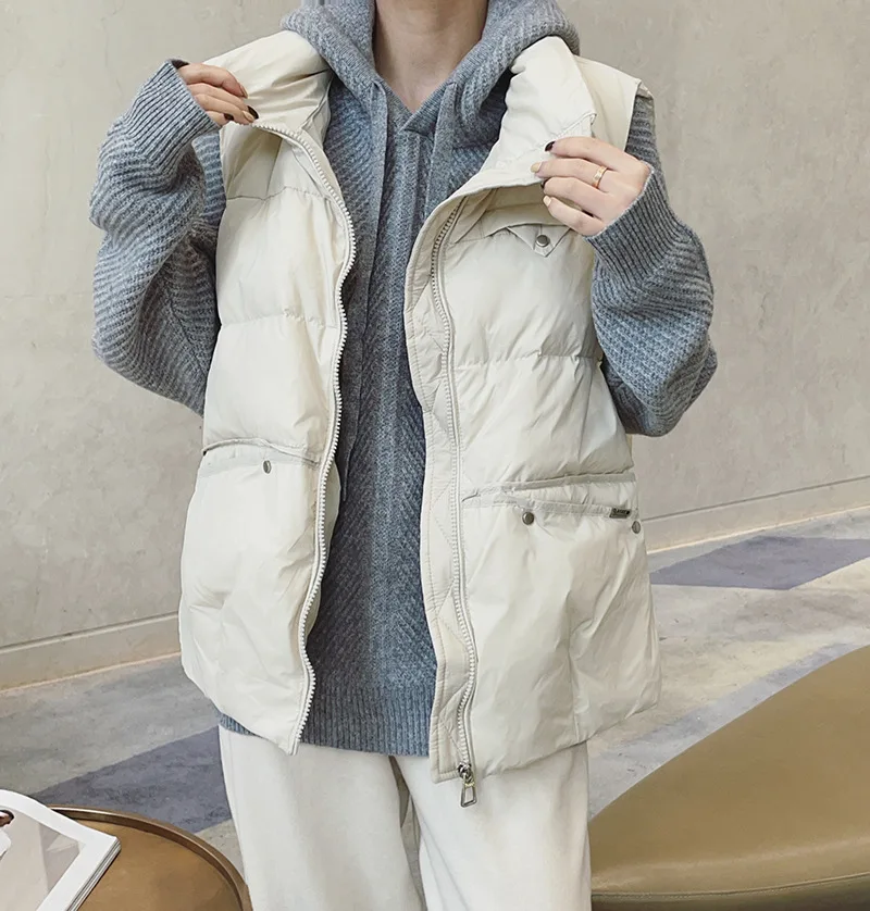 2023 Autumn Winter Women Down Waistcoat Jacket Warm Light White Duck Down Vest Female Sleeveless Bigsize Parkas Short Tank Coat