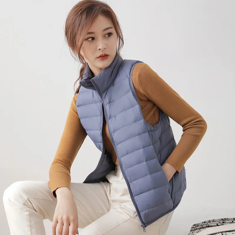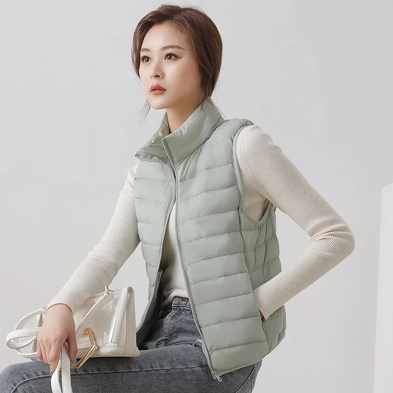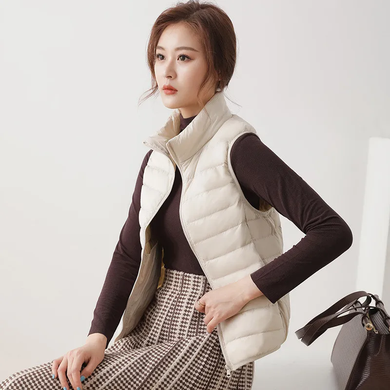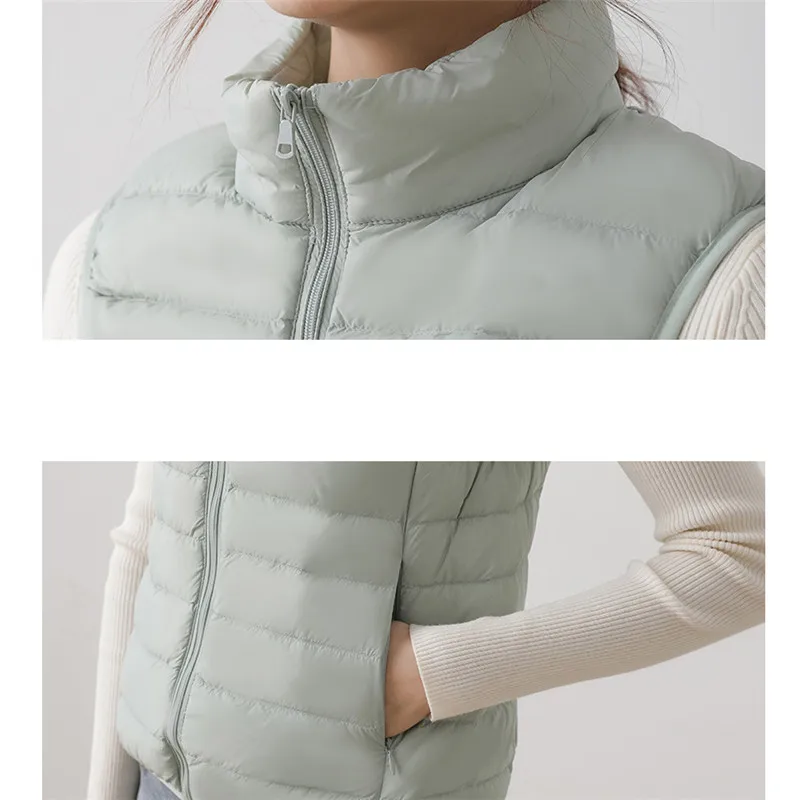 Autumn Winter Ultra Light 90% White Duck Down Vest Coat Women Warm Waistcoat Jacket Lady Stand Collar Sleeveless Tank Short Tops