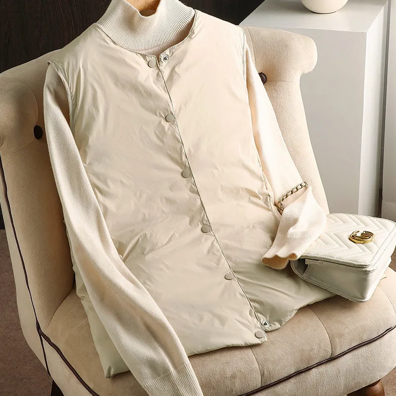 Sanishroly New Autumn Winter Oversize Down Waistcoat Women Light Thin White Duck Down Vest Parkas Ladies Short Sleeveless Jacket