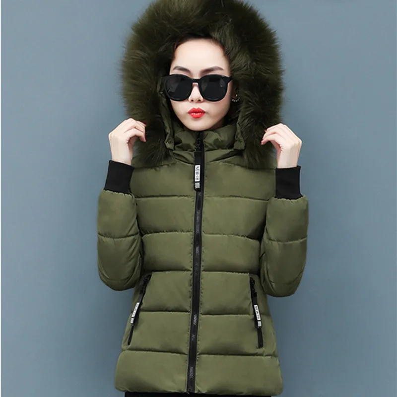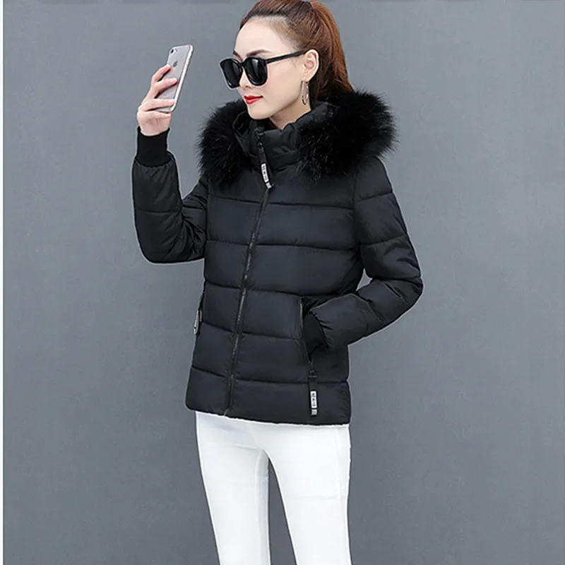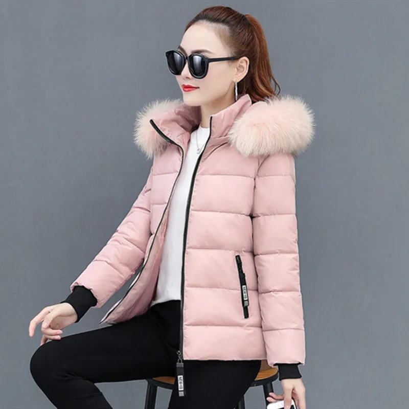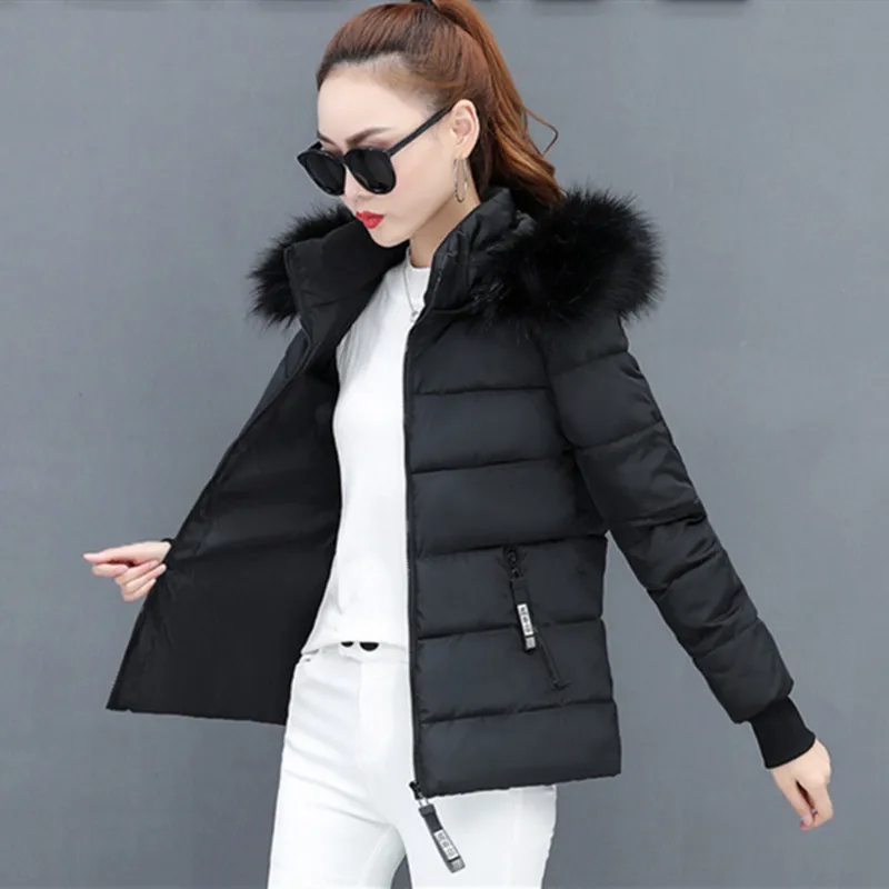 Winter Polyester Women's Down Jacket Hooded Long Sleeve Cardigan Pockets Zipper Slim Solid Thick Fashion Casual Down Jacket