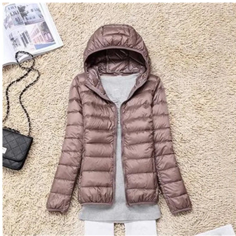 Winter Women Ultralight Thin Down Jacket White Duck Down Hooded Jackets Long Sleeve Warm Coat Parka Female Short Outwear A178