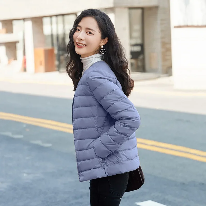 New Autumn Winter Warm Women's White Duck Down Jacket for Slim Fashion Ultra Light Short Coat F183