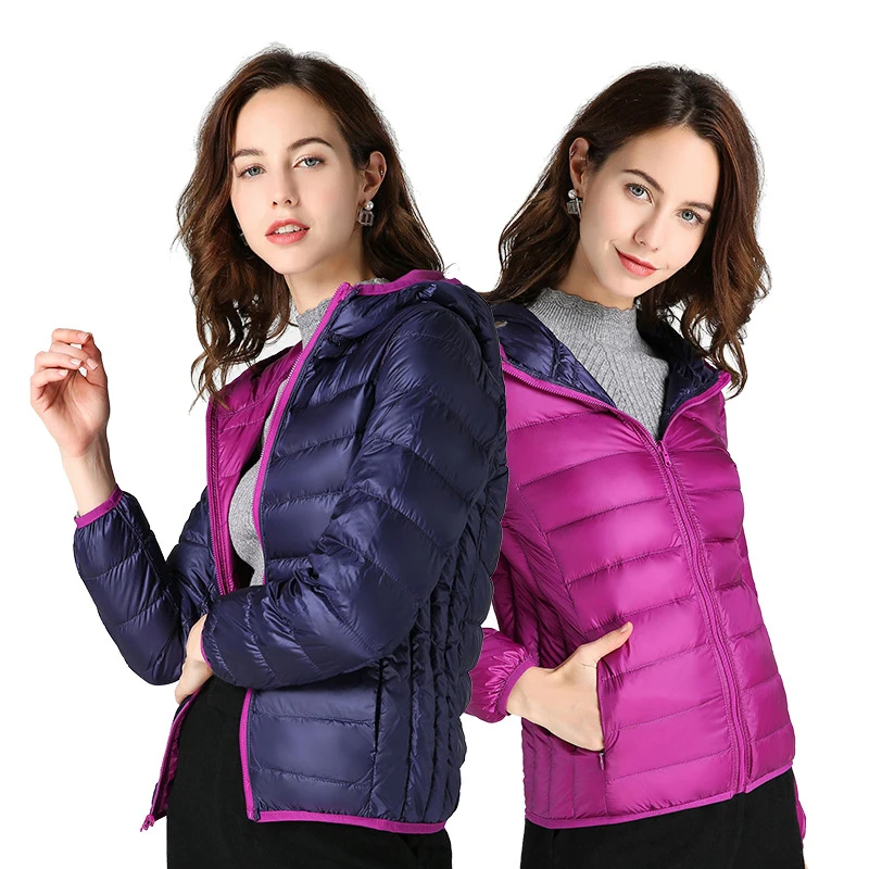 Autumn Women Ultralight Thin Down Jacket Double-sided White Duck Down Hooded Jackets Warm Coat Parka Female Portable Outwear