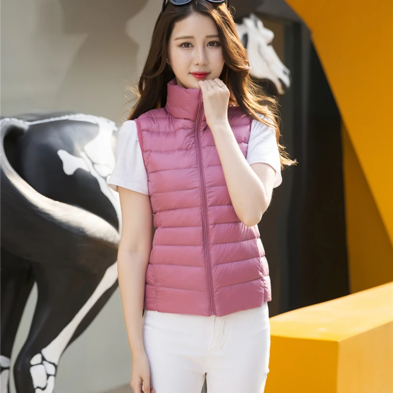 2022 New Women 90% White Duck Down Vest Women's Ultra Light Duck Down Vest Jacket Autumn Winter High collar Sleeveless Coat