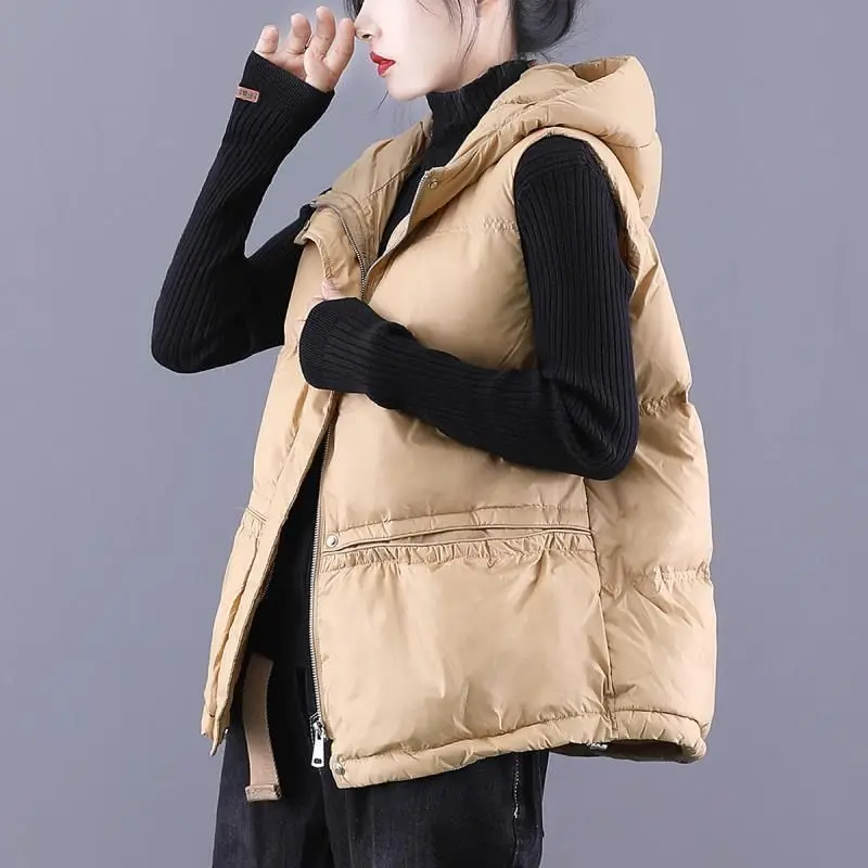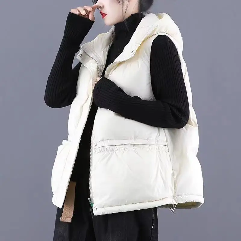 2022 New Hooded Women's Tank Top Short Loose Fit Warm Casual Down Cotton Padded Tank Top Coat Sleeveless Winter Jacket