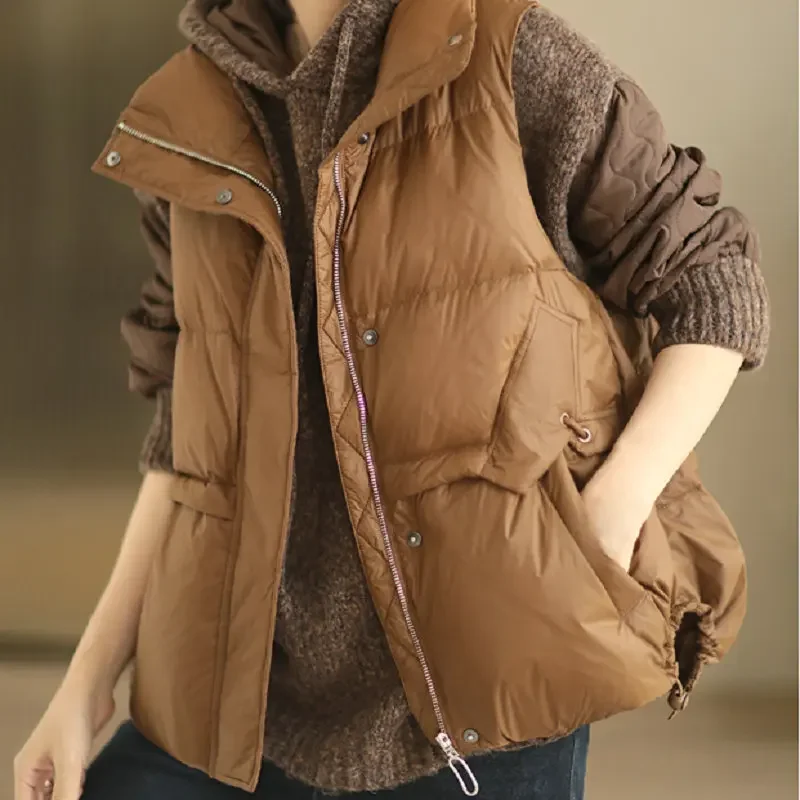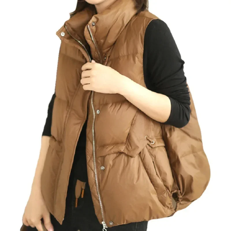 Fashionable White Duck Down Vest for Women, High-end Sleeveless Down Coat Lightweight Waistcoat Winter Jacket Women VT-315