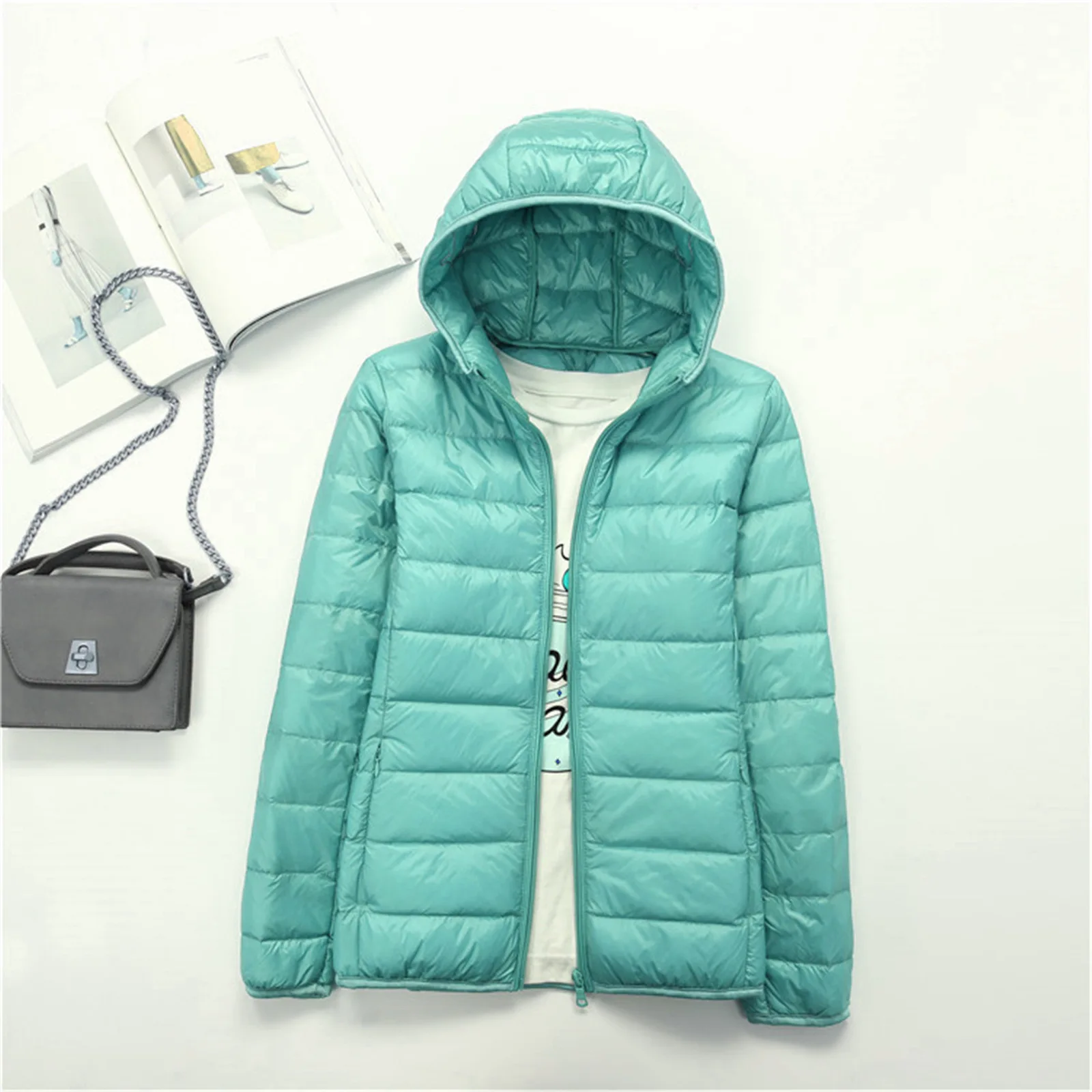 Winter Women Ultralight Thin Down Jacket Hood White Duck Down Jackets Full Sleeve Warm Coat Parka Female Portable Outwear Autumn