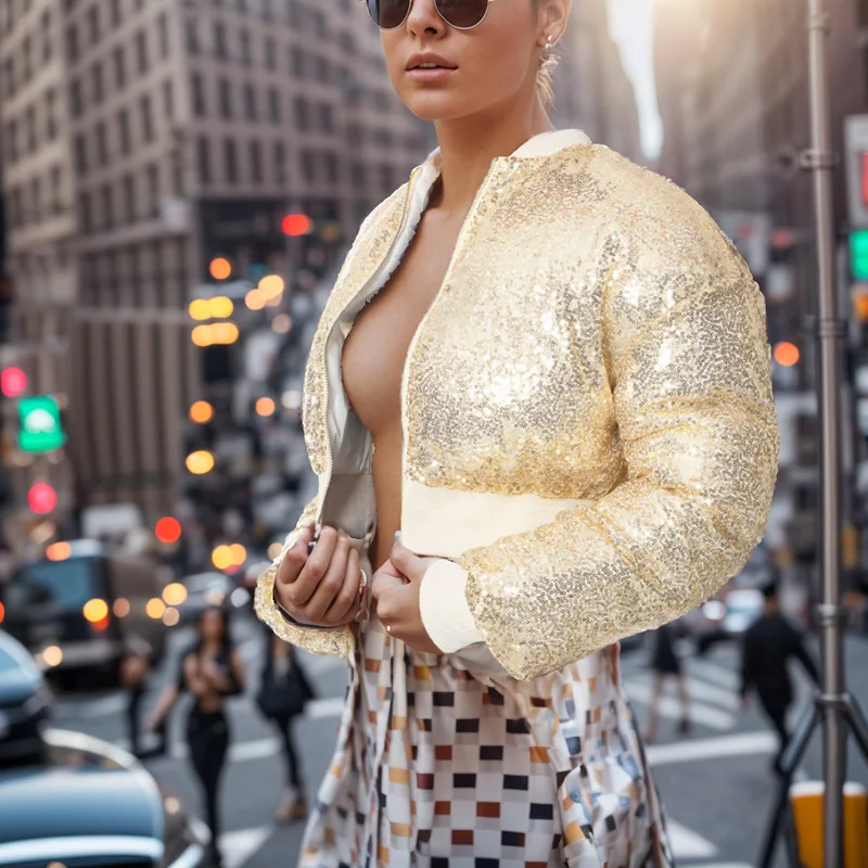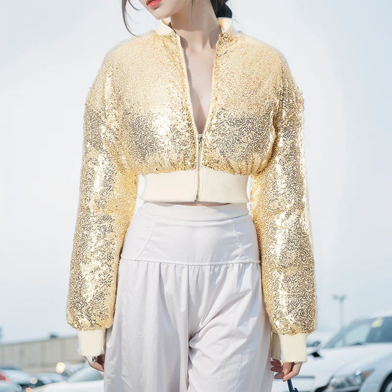 Winter Women Shiny Gold Sequins Puffer Jackets Warm Thick Bubble Coats Glitter Sequin Parkas Down Zipper Short Jackets Parkas