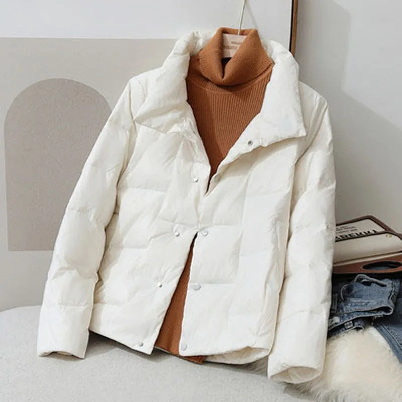Women Oversize Down Coat 2023 Autumn Winter Warm Light White Duck Down Jacket Parkas Female Single Breasted Slim Short Outwear