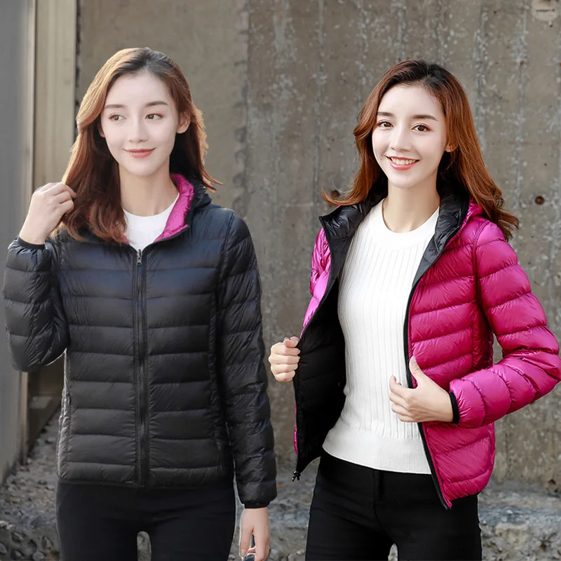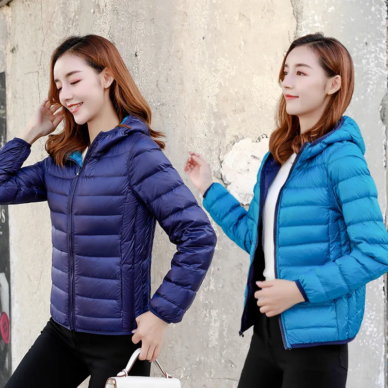 New Style Women Dual Wear Down Coat Lightweight Thin Plus Size Hooded Short Portable Puffer Jacket Women Outerwear JK-960
