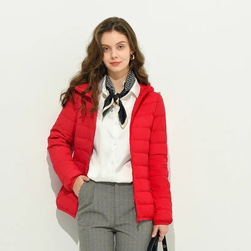 2022 Hooded Down Coat Autumn Winter Women Light Thin White Duck Down Jacket Parkas Ladies Slim Lightweight Puffer Outwears 4XL