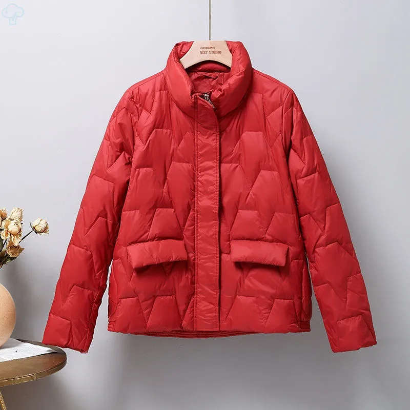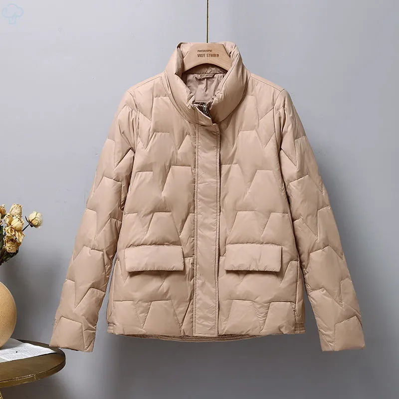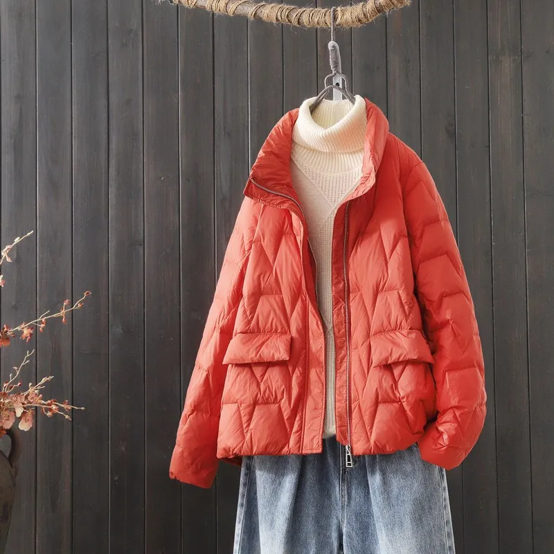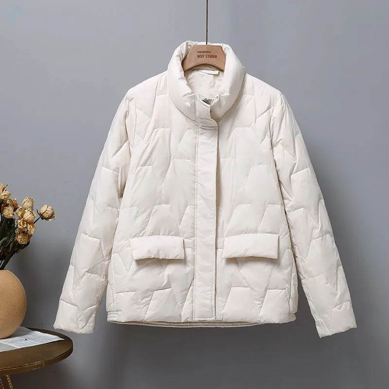 2022 Autumn Winter Short Down Jacket Women Warm Thicken White Duck Down Coat Female Stand Collar Loose Oversize Parkas Outwears