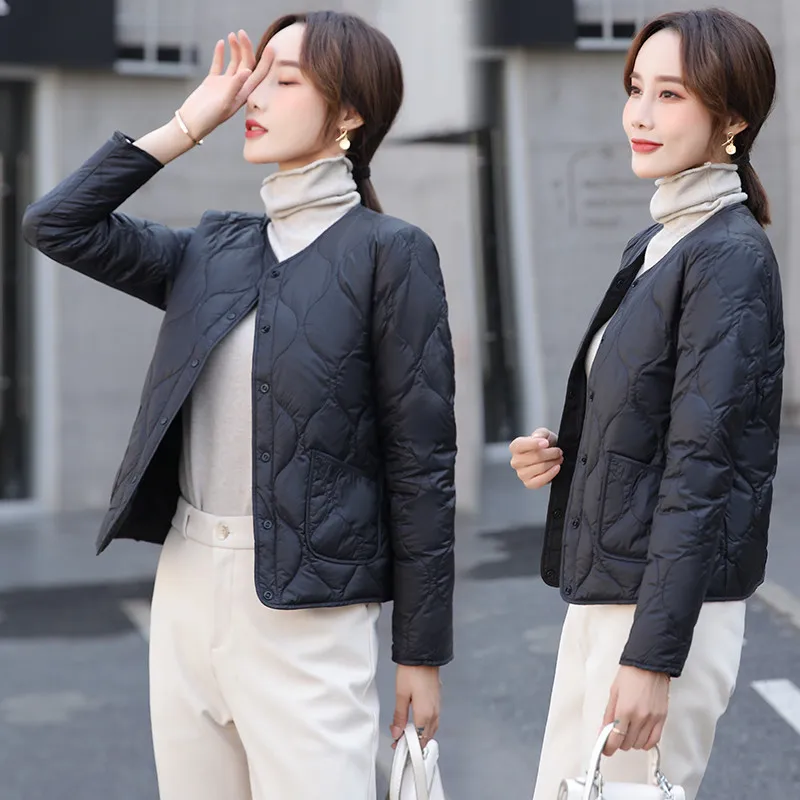 2023 Autumn Winter Warm Oversize Down Parkas Women Light White Duck Down Jacket Ladies Long Sleeve Single Breasted Short Coat