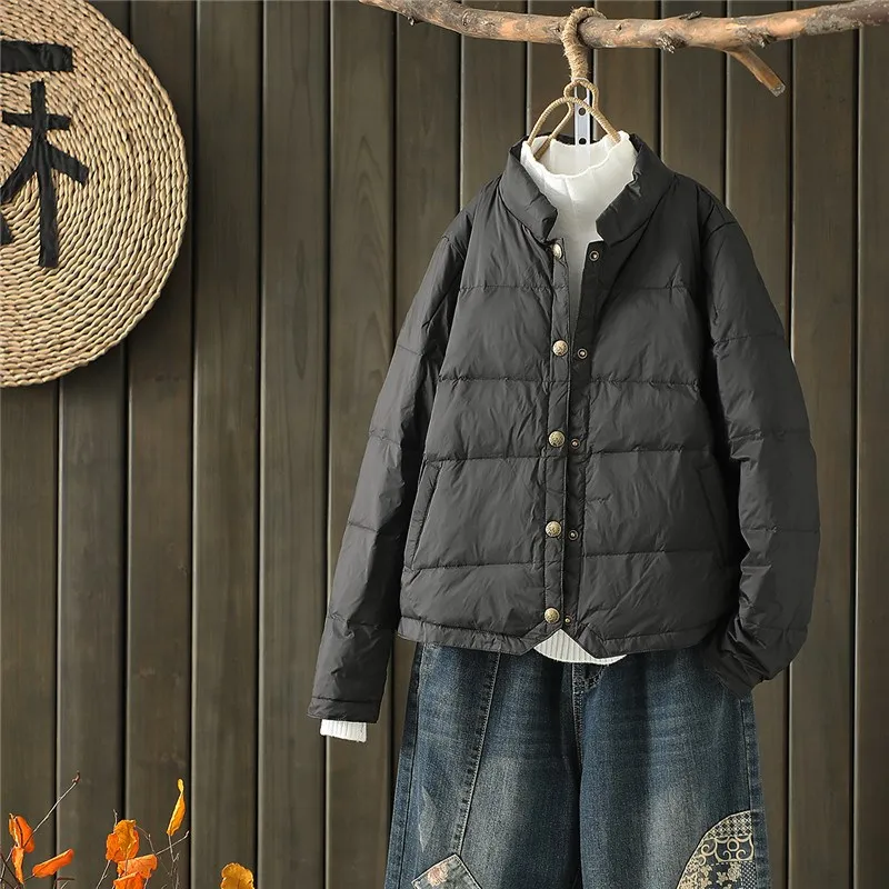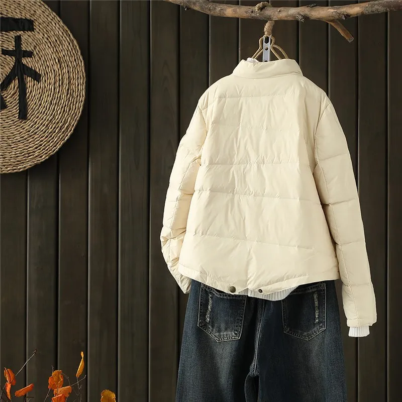 2022 Autumn Winter Ultra Light White Duck Down Jacket Parkas Women Stand Collar Lightweight Down Coat Female Short Bread Outwear