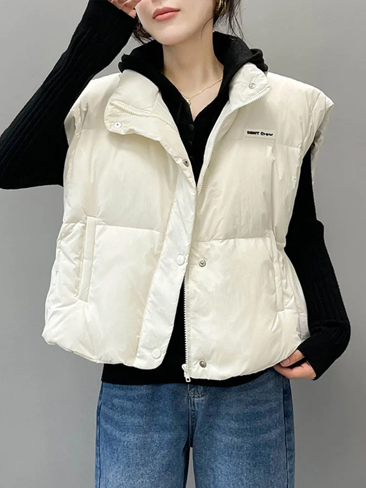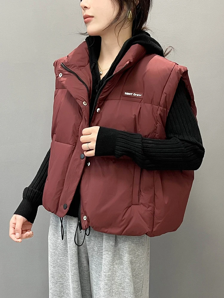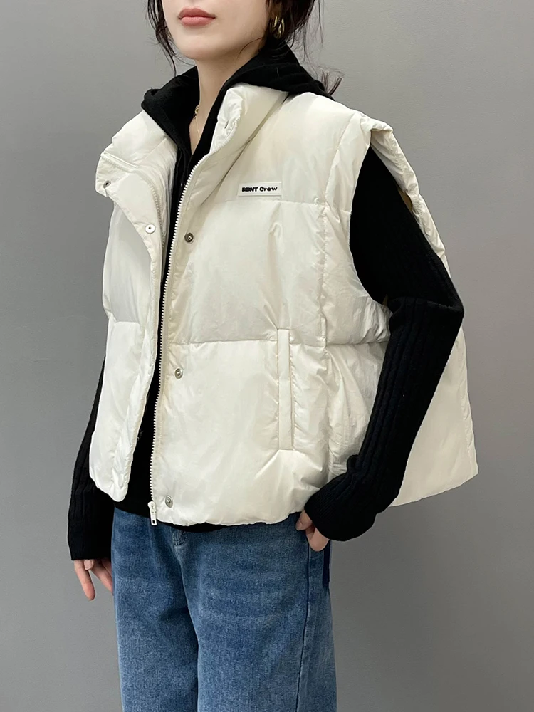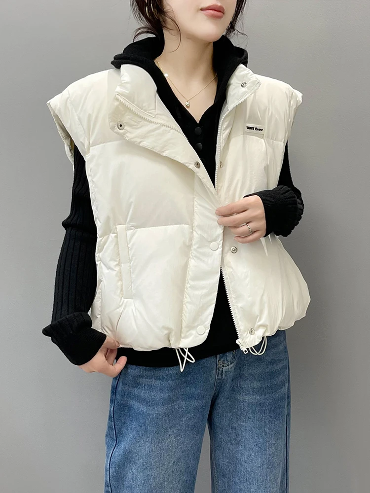 2023 New Winter Women Short Warm White Duck Down Vest Loose Sleeveless Puffer Jacket Female Zipper Windproof Waistcoat