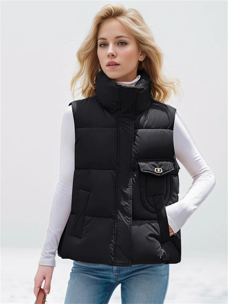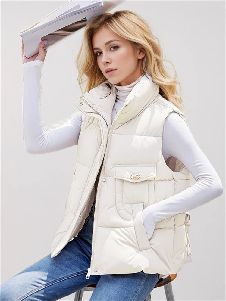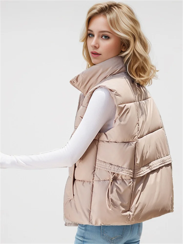 2024 Winter New Women's Casual Puffer Jackets Sleek Loose Vest Stand Up And Shoulder Sleeveless Vest Warm Jacket