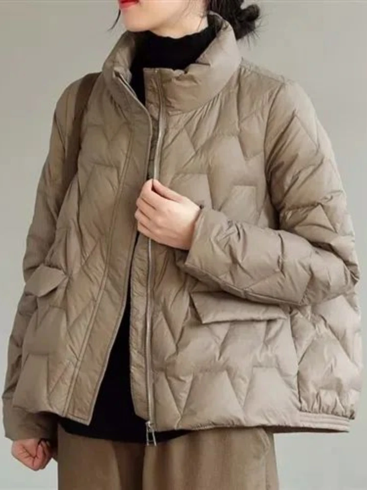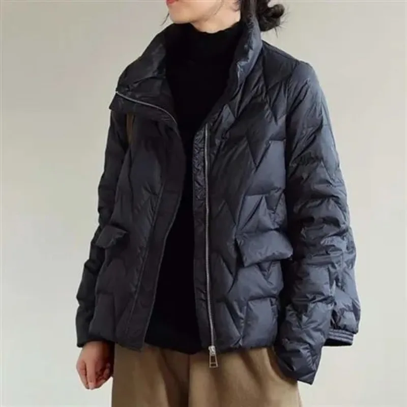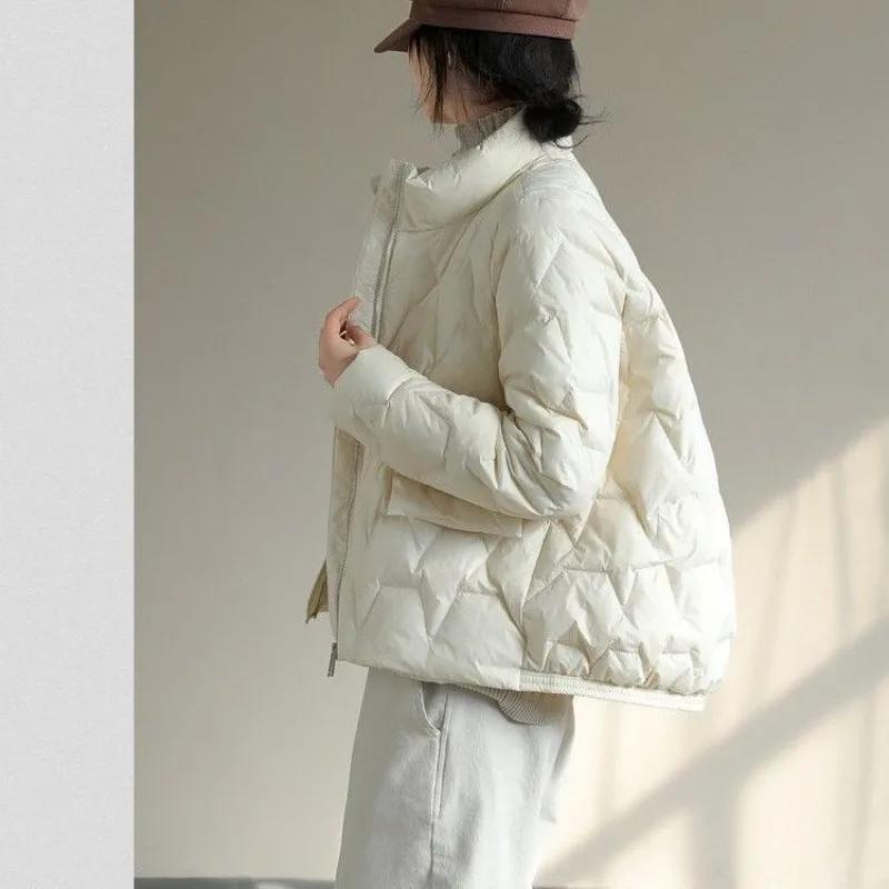 Winter Stand Collar Jacket Women Fashion Short Snow Parkas Casual Zipper White Duck Down Coats Casacos De Inverno Feminino Q512