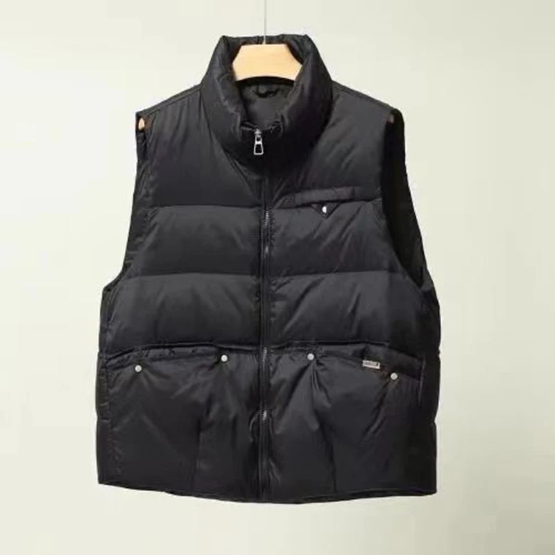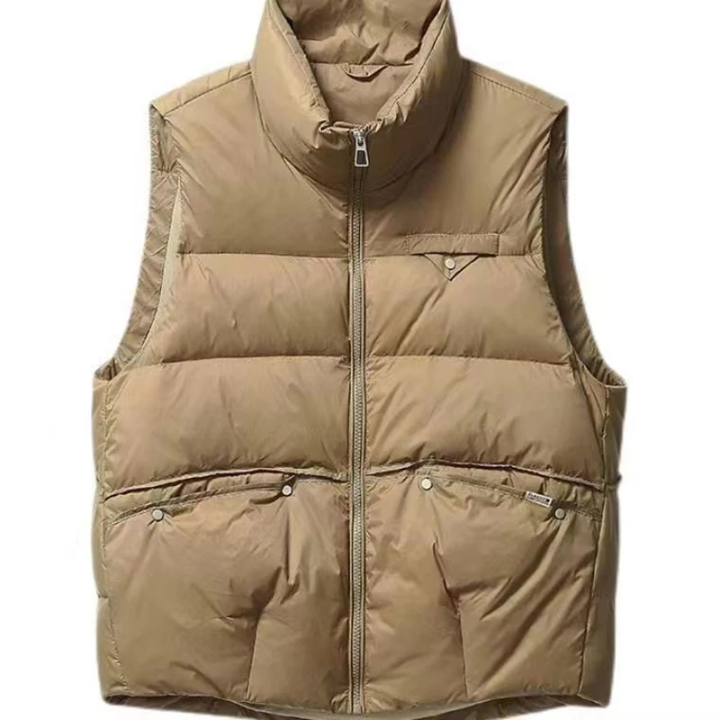 2023 Women's Casual Warm White Duck Down Vest Winter Female Solid Color Loose Pocket Vest Simple Style Zipper Short Down Vest