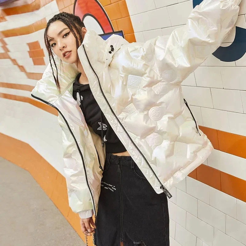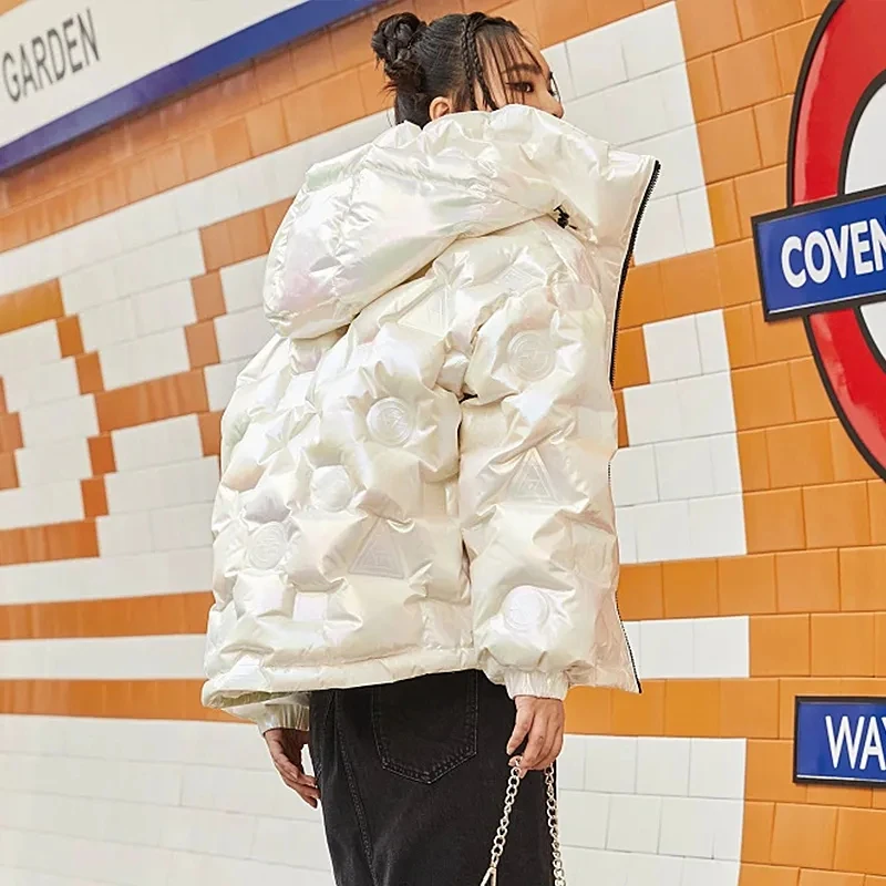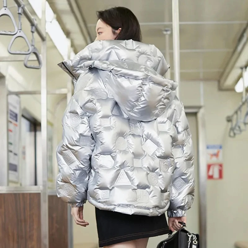 NEW Winter Women's Coat Silver Down Jacket Loose Glossy Hooded Coat Warm Thicken Parka Outwear Female Casual Short Jackets Tops