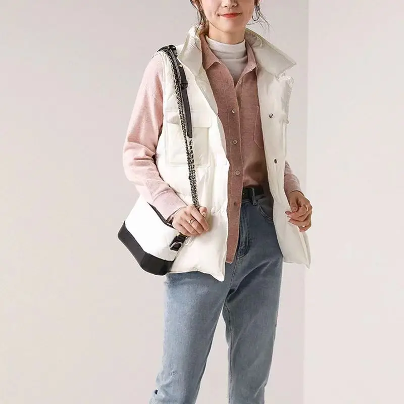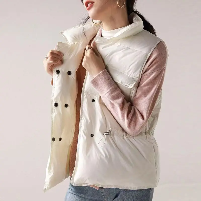 New 2023 Ultra Light Down Vest Women Short Vest Windproof Lightweight Warm Waistcoat Female White Duck Down Down Coat Sleeveless