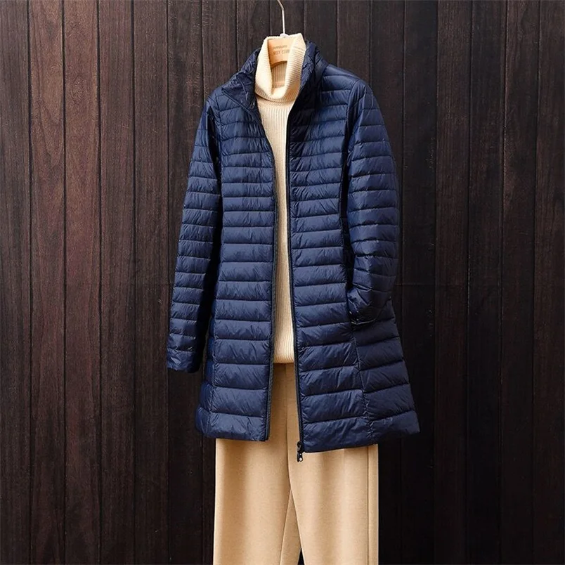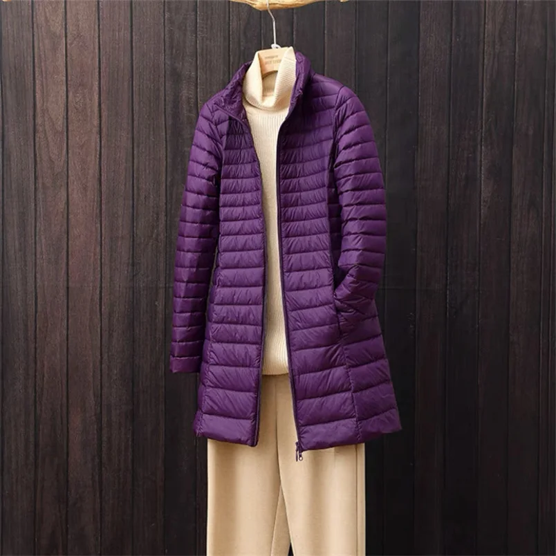 Women Ultra Light White Duck Down Jacket Stand Collar Solid Color Basic Simple Autumn Winter Outwear Purple Navy blue Khaki