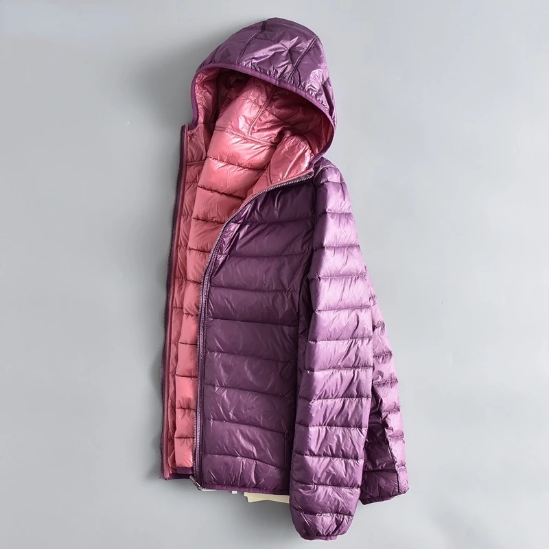 Light Hooded Short Feather Jacket Women Windproof Sleeve Down Coat Double Sided Splicing Colour Outwear Mujer De Doble Cara