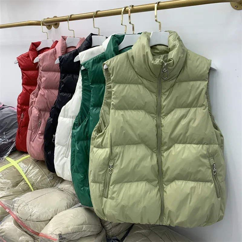 2022 Women Autumn Thicken Loose Padded Zipper Solid Color Jacket Vest Stand Collar Casual All Match White Duck Down Coat Vests