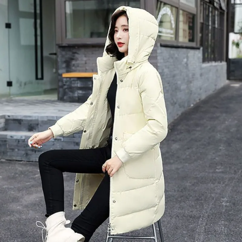 2023 New Women Down Jacket Winter Coat Female Mid Length Version Parkas Slim Fit Thick Outwear Hooded Leisure Time Overcoat