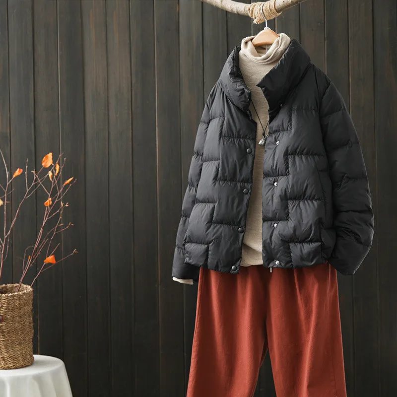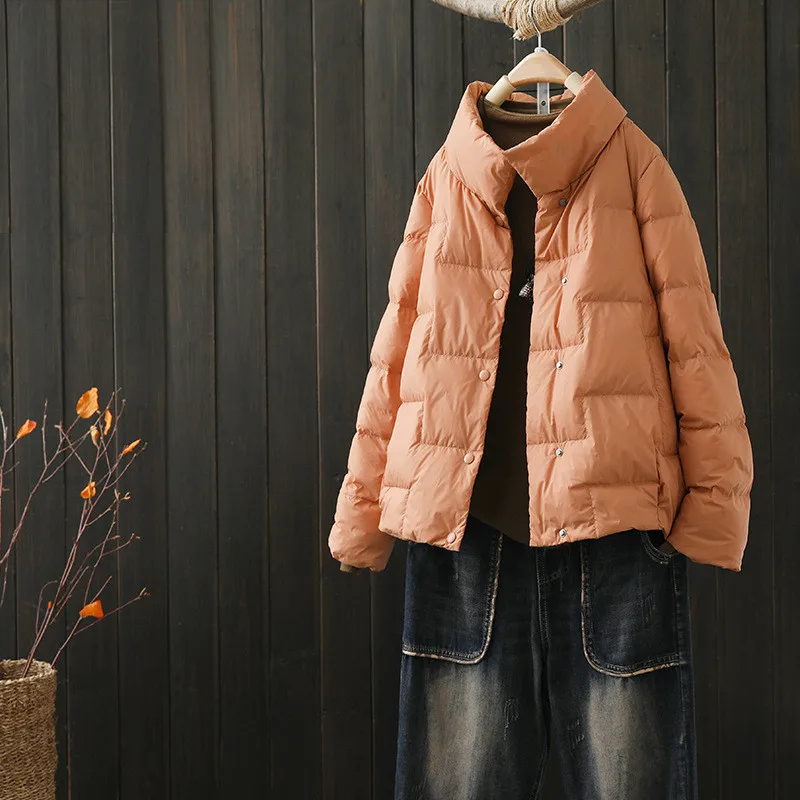 Single Breasted Down Coat 2023 Autumn Winter Women Light White Duck Down Jacket Parkas Ladies Short Loose Bigsize Warm Outwears