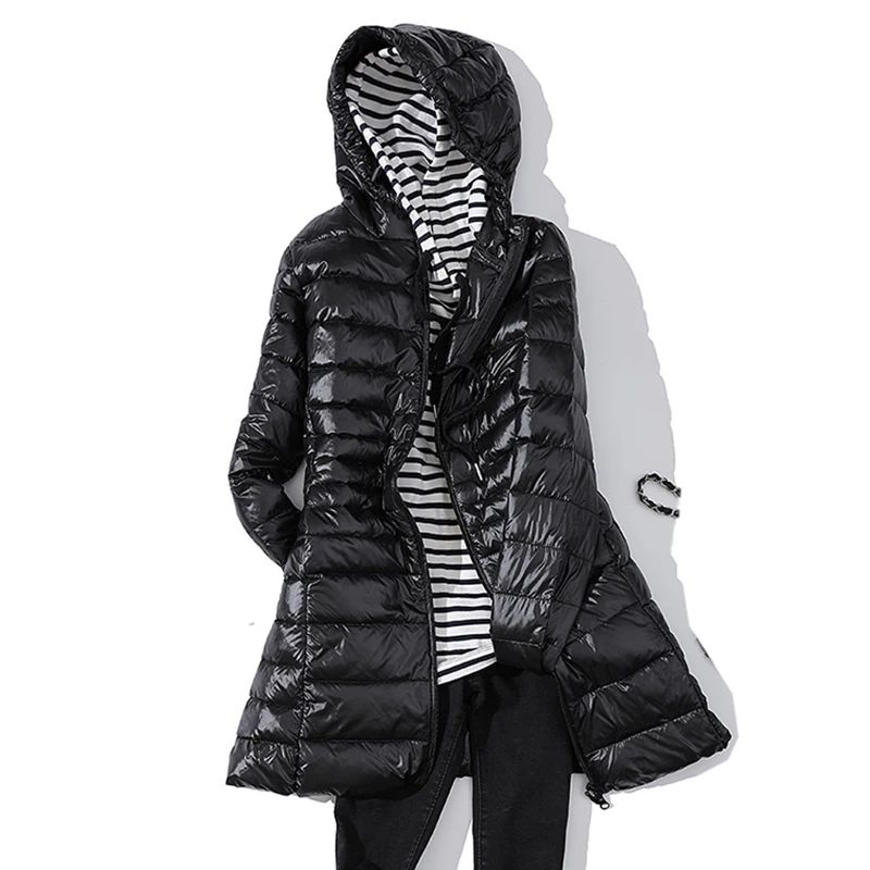 Winter Woman Padded Hooded Long Jacket White Duck Down Female coat Ultra Light Slim Solid Jackets Coat Portable Parkas