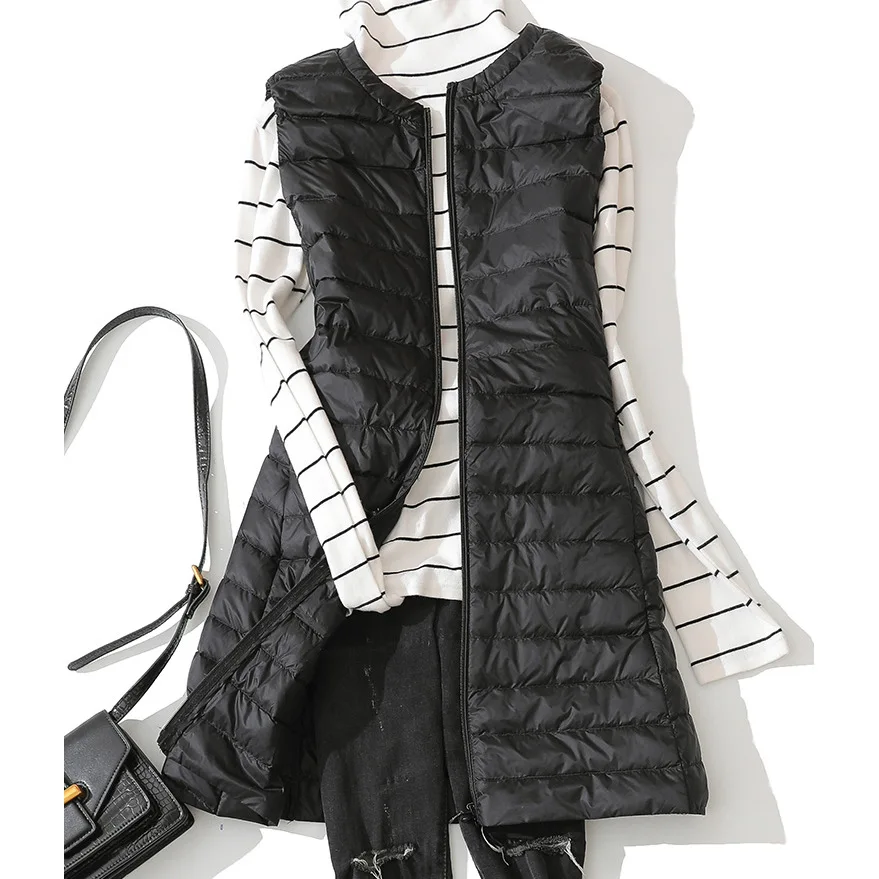 Long Ultra Light Down Jacket Women Sleeveless Zipper Winter Coat Puffer Feather Padded Vest Jacket Slim Female Windbreaker 2023